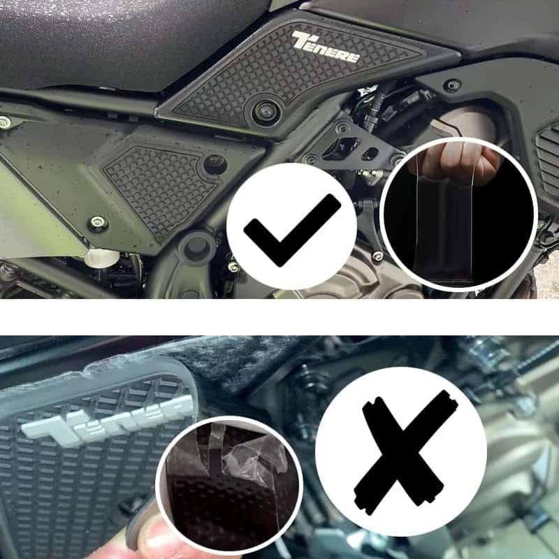 La textura única del agarre de tracción es suave y duradera. Puede proporcionar al conductor agarre y sensación, ayudar a controlar mejor la motocicleta y hacer que el conductor mantenga una postura corporal estable al girar y frenar, mientras también reduce la fatiga y proporciona al conductor Con total confianza, puedes concentrarte por completo en la carretera (o pista) sin resbalar ni deslizarte sobre el tanque de combustible.