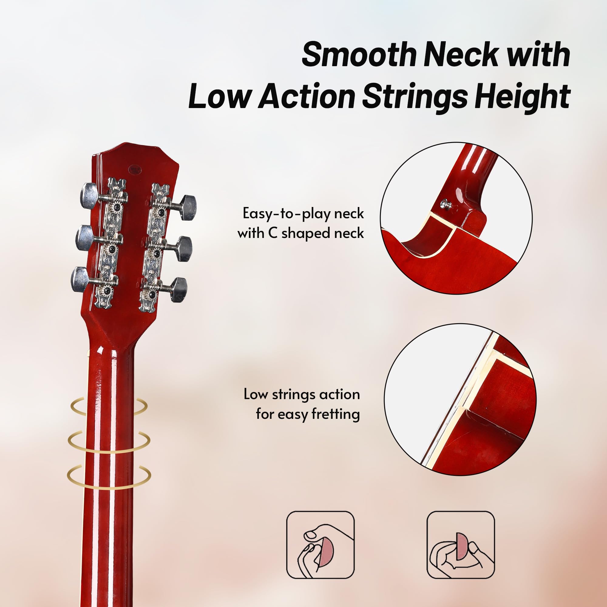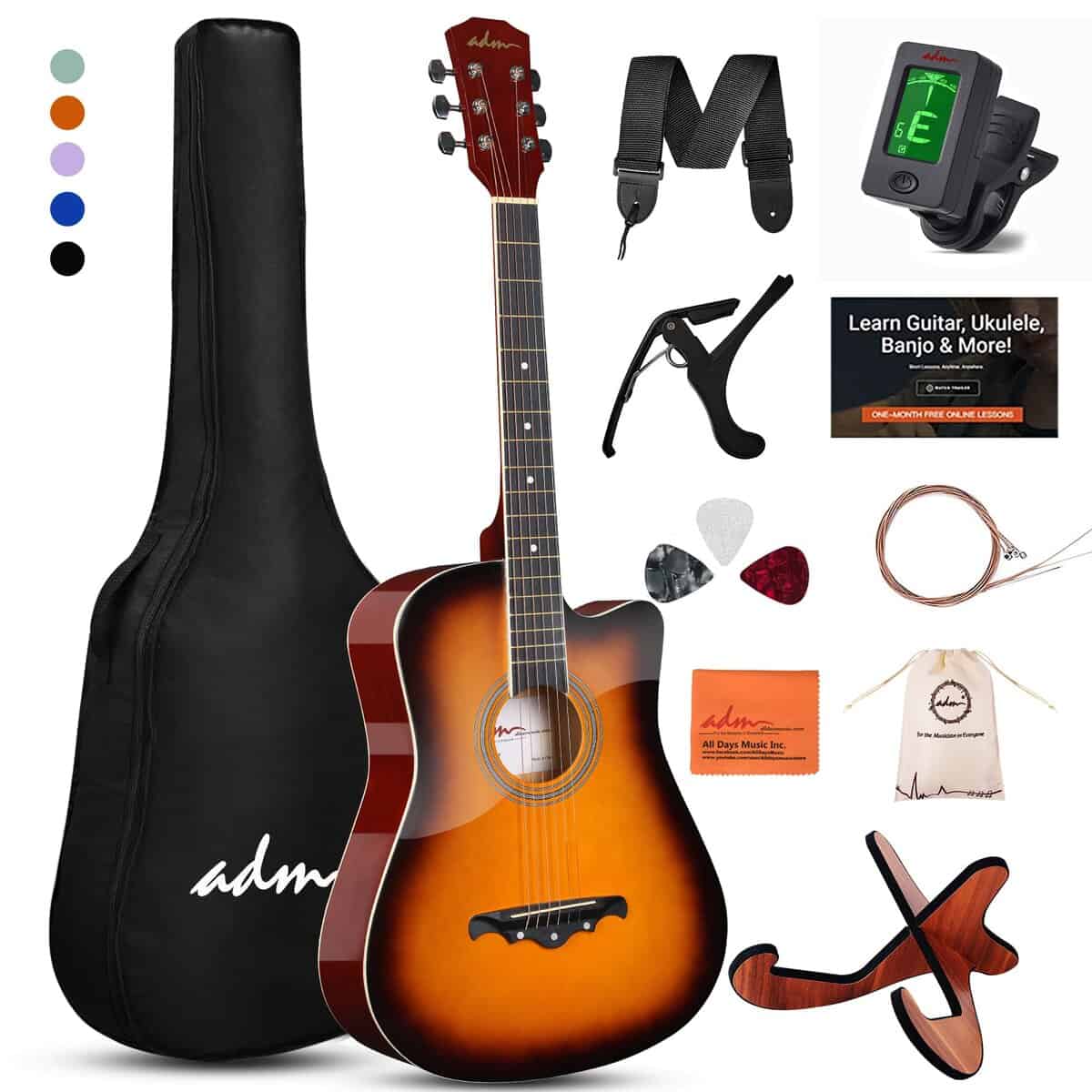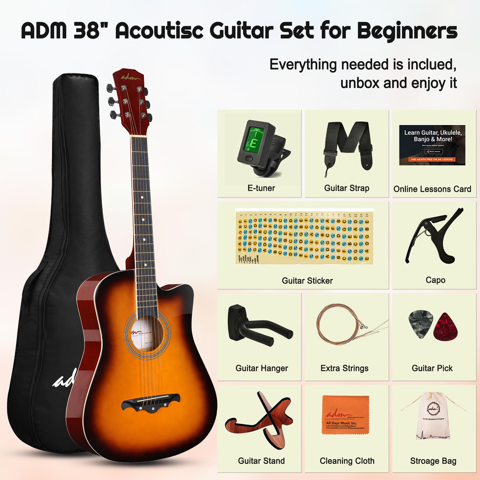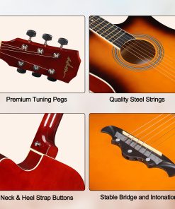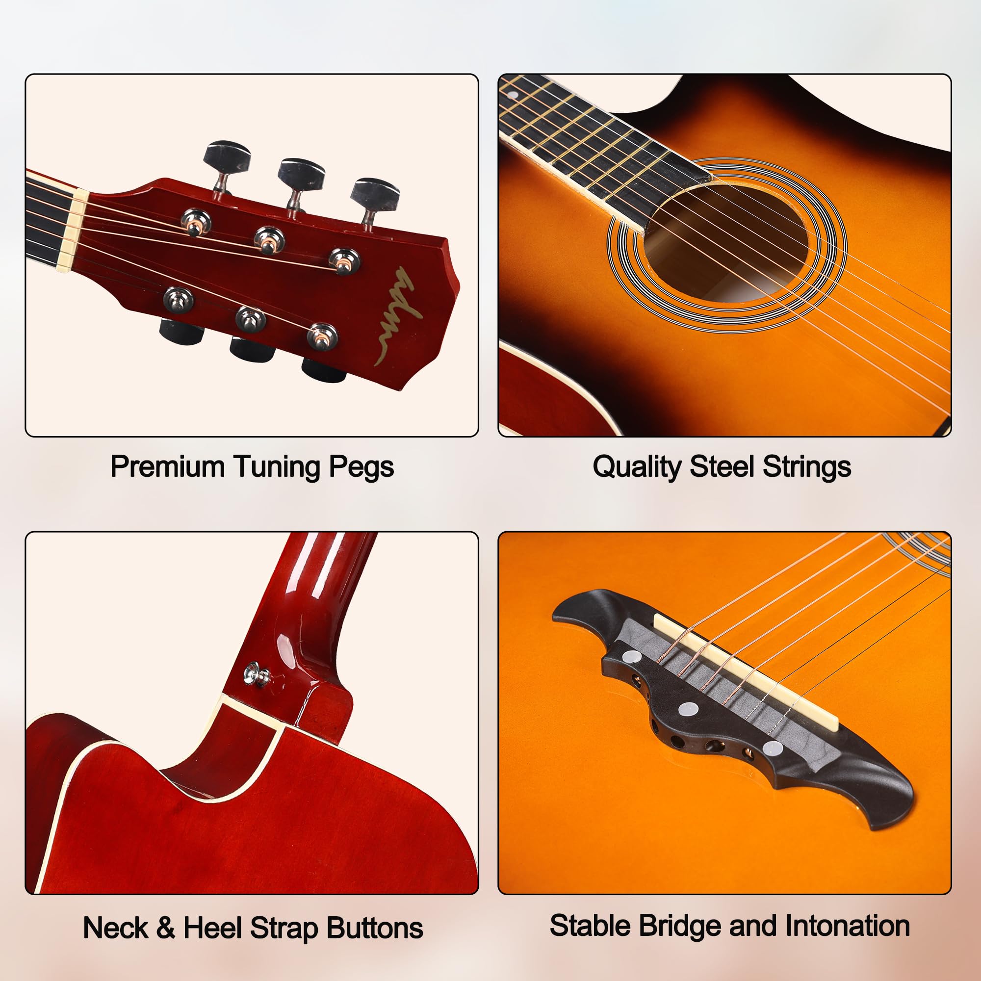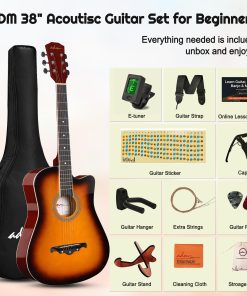 4. Máxima calidad de ejecución: Guitarra acústica de 38 pulgadas de ADM con un cuerpo con cutaway, que produce un tono completo y vibrante adecuado para diversos estilos musicales; Su diseño optimiza la ejecución y el tono para principiantes, proporcionando un instrumento de calidad que fomenta el aprendizaje y el crecimiento.