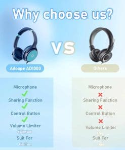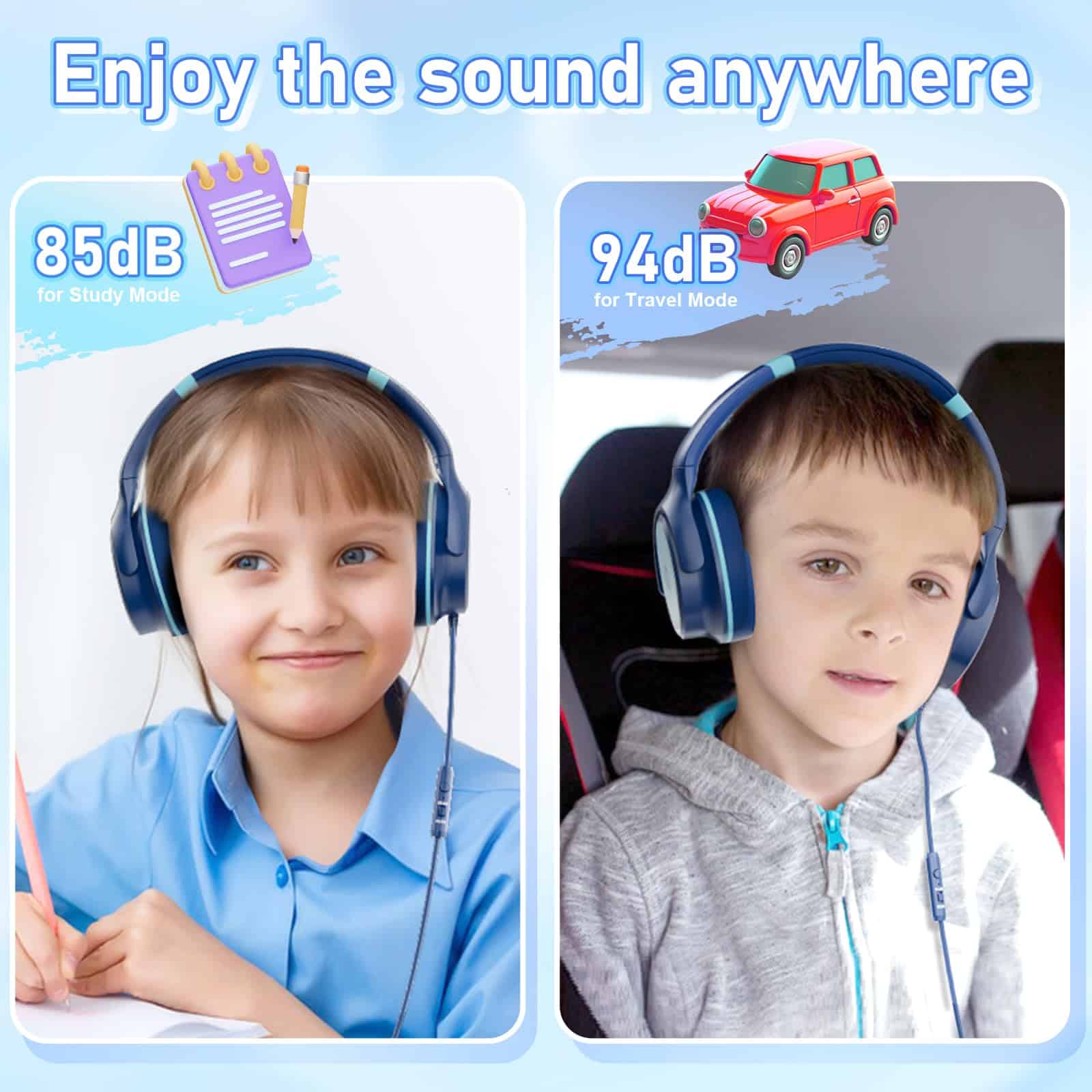 1. Control de volumen 85/94dB Nuestro control de volumen integrado ayuda a proteger al oyente de dañar su audición después de una sesión prolongada de uso de los auriculares. El limitador de volumen de 85dB está diseñado para uso diario y clases en línea, mientras que el limitador de volumen de 94dB es más adecuado para entornos al aire libre como parques, aviones o incluso el metro.