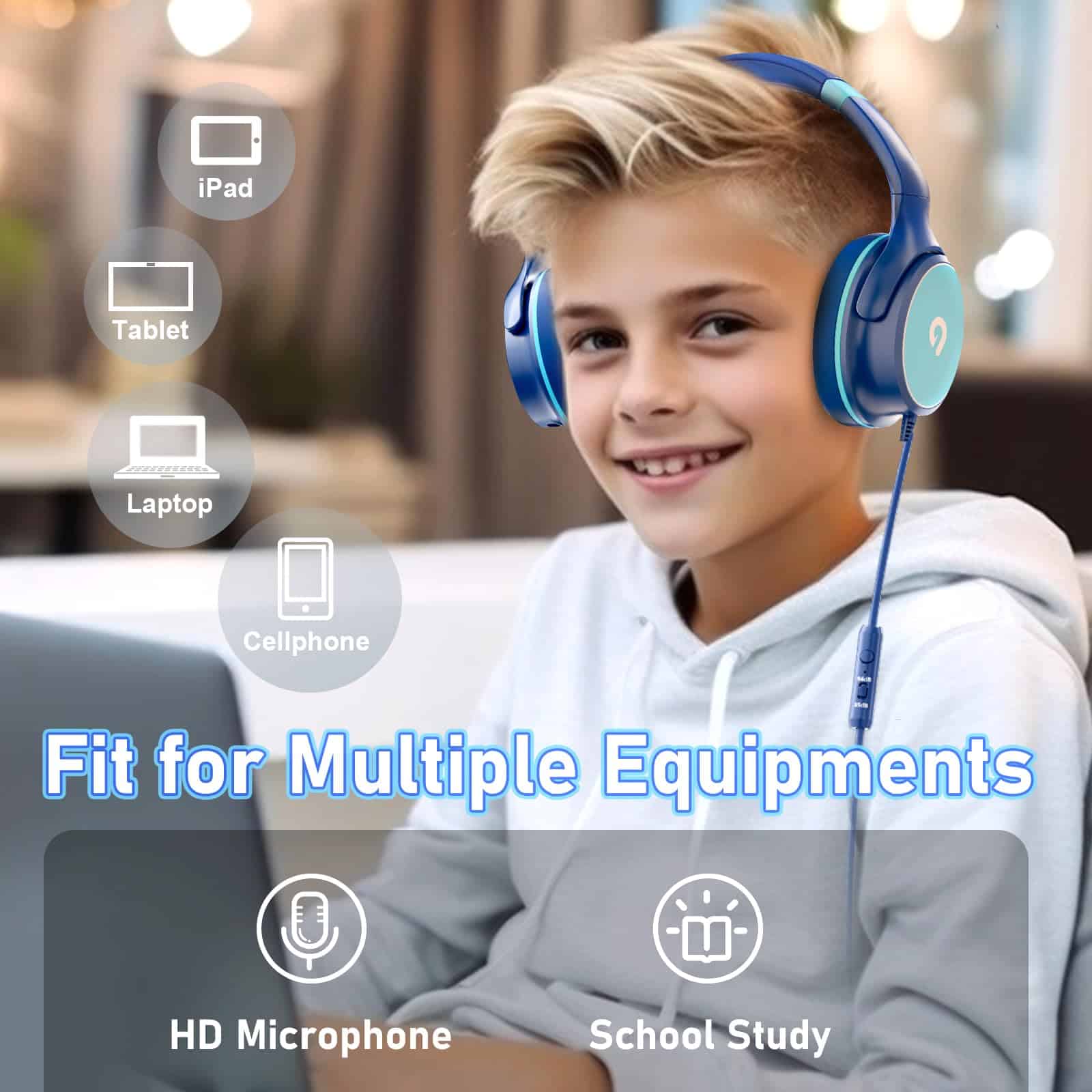 2. Auriculares para niños con sonido estéreo Ya sea que esté utilizando los auriculares para música, videollamadas o viendo su programa favorito. Nuestros auriculares con sonido estéreo pueden proporcionar una experiencia auditiva muy clara y rica para sus hijos en la escuela o cursos en línea.
