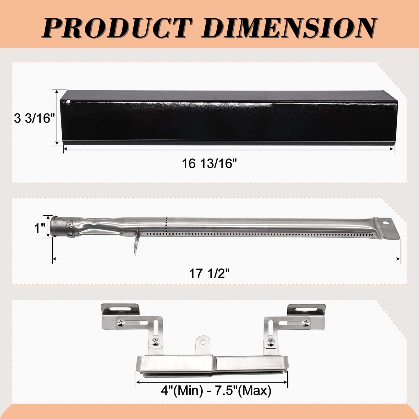 Dimensiones de la placa de calor: 16 13/16″ x 3 3/16″, Material: acero porcelanizado