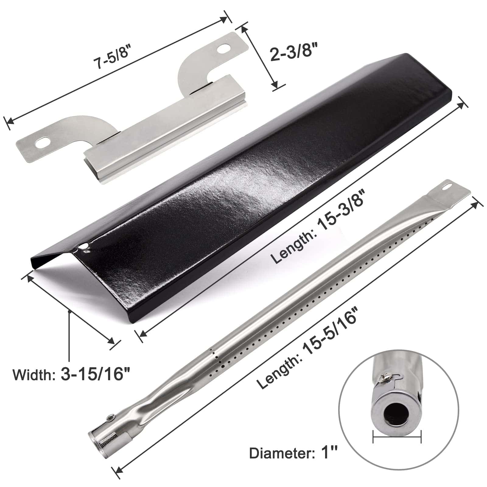 Dimensiones del Quemador: 15-5/16″ x 1″ de diámetro, Material: acero inoxidable