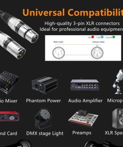 Destacados: 1. Diseño profesional: 3 pines chapados en oro, conductores de cobre libre de oxígeno, aislamiento de polietileno y doble blindaje de papel de aluminio y cobre garantizan la transmisión sin pérdidas de señal y datos, ofrecen un sonido puro. 2. Combinación perfecta: Los cables XLR cortos de 10 pies con conectores de 6 colores facilitan la gestión de su cableado alrededor de una estación de trabajo, aumentan el interés visual y ayudan a mejorar la eficiencia. De esta forma, puede evitar torcer accidentalmente cables de conexión diferentes. 3. Conectores duraderos: El cable de micrófono corto de AeeKoo adopta un diseño de carcasa de aleación de zinc resistente, que aumenta la durabilidad del cable, evita la rotura del extremo y tiene una vida útil más larga. Los conectores de auto-bloqueo proporcionan una conexión estable a su dispositivo. 4. Funda de PVC de alta calidad: Los cables XLR duraderos están muy bien hechos y tienen una excelente resistencia y flexibilidad para un fácil almacenamiento y uso. El cable flexible de color negro es resistente a la suciedad y es ideal para actuaciones en el escenario. 5. Maravillosa compatibilidad: El cable XLR macho a hembra de AeeKoo está diseñado para dispositivos con conectores XLR de 3 pines. Como micrófonos, consolas de mezcla, cámaras, mesas de mezclas, sistemas de altavoces, entre otros. 10 pies de cables XLR, cables de micrófono balanceados AeeKoo de 10 pies XLR macho a hembra.