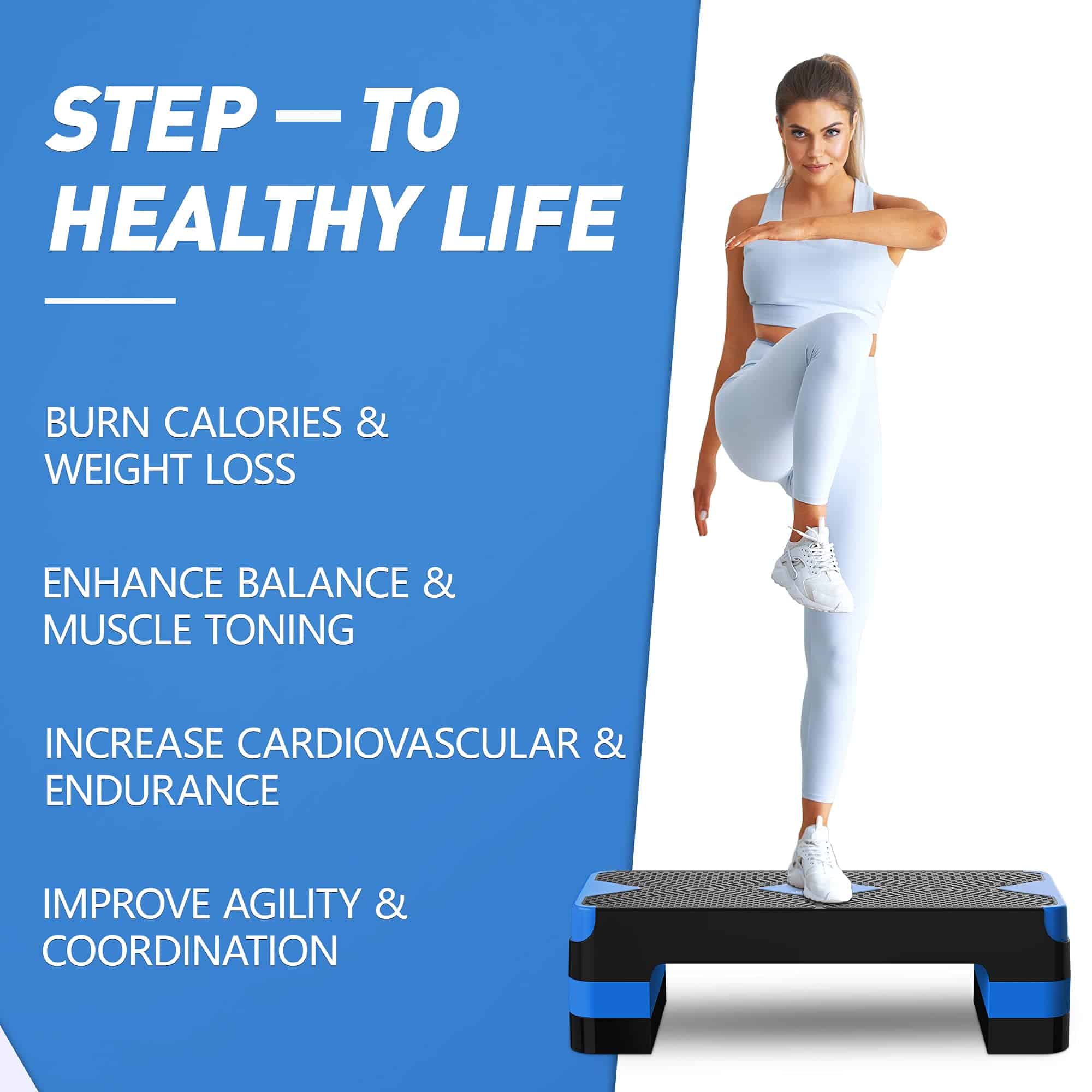 La Plataforma de Ejercicio Aeróbico GYMMAGE es una herramienta versátil diseñada para mejorar tu condición física y ayudarte a alcanzar tus objetivos de fitness. Con su superficie antideslizante y sin rayones, te brinda la confianza y seguridad necesarias para realizar una amplia variedad de ejercicios aeróbicos y de fuerza. Sus 4 elevadores ajustables te permiten personalizar la intensidad de tus entrenamientos, desafiándote a superarte en cada sesión. Construido con material ABS de alta calidad, el Step GYMMAGE es resistente y duradero, capaz de soportar hasta 400 lbs de peso. Además, su diseño compacto y ligero te permite transportarlo fácilmente a donde quieras, ya sea en casa, en el gimnasio o al aire libre. Únete a la revolución del fitness con el Aeróbic Step GYMMAGE y comienza a disfrutar de sus múltiples beneficios para tu salud y bienestar.