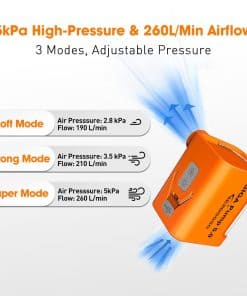 La mini bomba de aire GIGA PUMP 5 es un ejemplo de excelencia profesional en cuanto a bombeo de aire se refiere. Esta bomba de aire portátil ofrece hasta 5kPa de presión y una tasa de flujo de 260L/min, lo que la convierte en una herramienta eficiente para inflar colchonetas de aire, botes inflables, kayaks, camas inflables, juguetes de playa, muebles inflables y anillos de natación. Su innovador diseño cuenta con capacidades tanto de inflado como de succión, lo que facilita el proceso de inflado y desinflado, haciendo que el almacenamiento sea sencillo. Con una batería de 3600mAh de alta capacidad, esta bomba puede operar durante hasta 60 minutos en modo de baja presión o 30 minutos en modo de alta presión cuando está completamente cargada. La luz de camping incorporada ofrece un brillo ajustable, que le permite encontrar la iluminación perfecta para su entorno. Los anillos colgantes metálicos en dos direcciones permiten una iluminación direccional versátil. La bomba de aire GIGA PUMP 5 es compacta y portátil, pesando solo 5.8 onzas y midiendo 3.83 x 2.16 x 1.92 pulgadas, lo que la hace ideal para mochileros y viajeros. Viene con cinco boquillas versátiles que la convierten en su solución ideal para inflar una variedad de objetos, desde colchonetas de aire hasta bolsas de almacenamiento al vacío. Además, su clasificación IP55 garantiza que puede soportar diversas condiciones en el campo. Con 5 años de servicio experto, GIGA Pump 5 está respaldada por un equipo dedicado que proporciona soporte y asistencia continua para una experiencia libre de problemas.