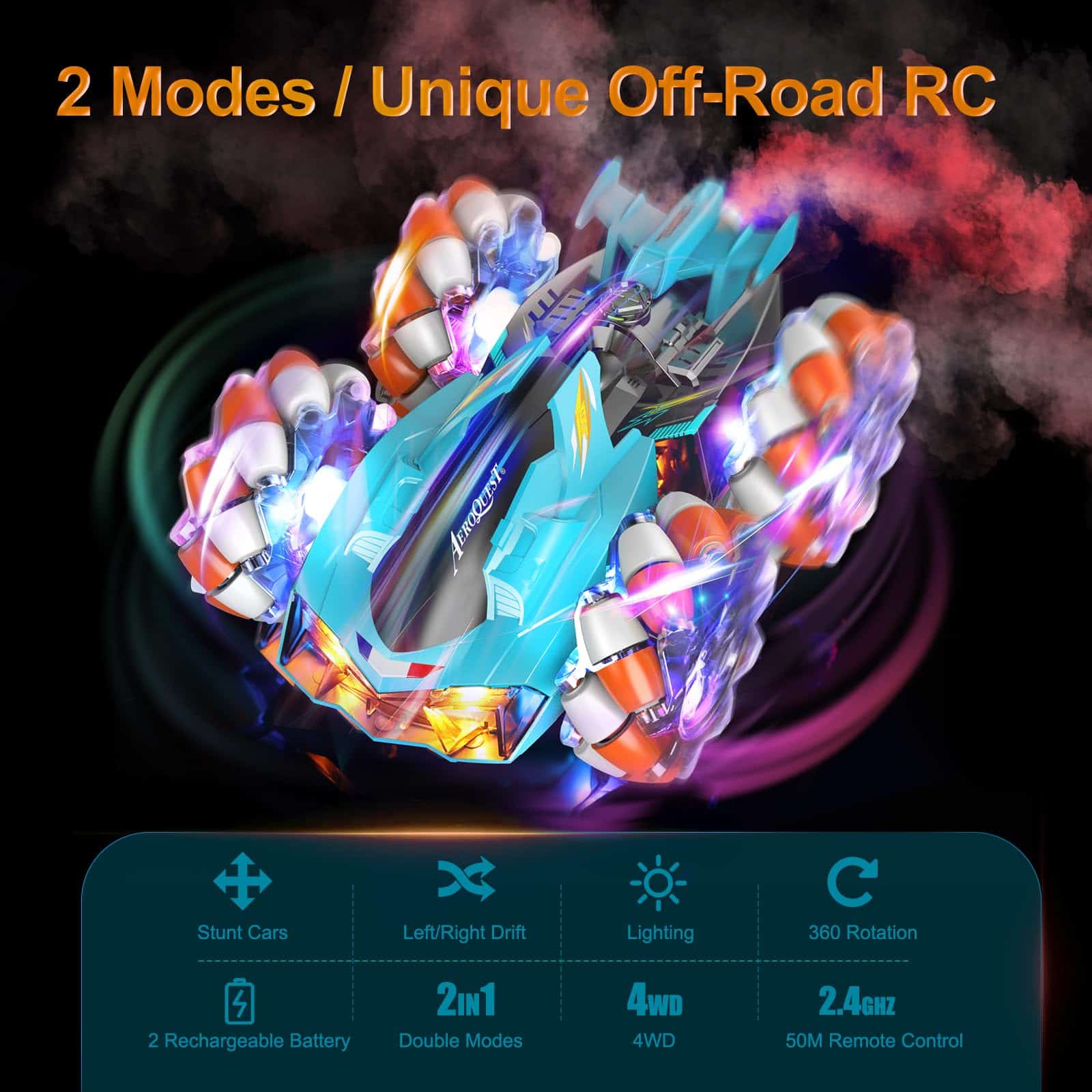 AEROQUEST 2 en 1 Coches de Acrobacias Control Remoto, Coche