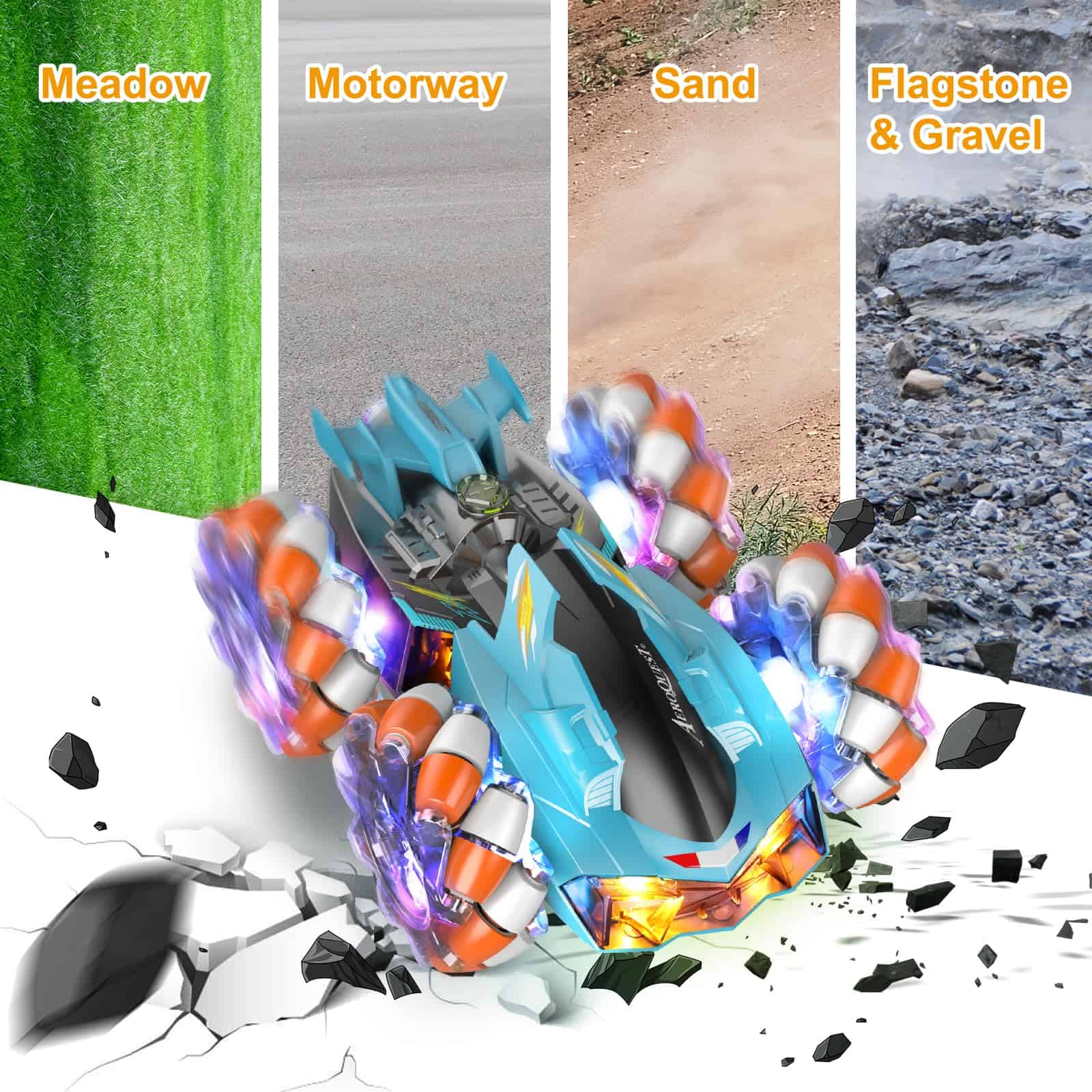 3. Regalo ideal de coche de acrobacias: Con su diseño vibrante y el sonido del motor rugiente, este coche de acrobacias de control remoto 2 en 1 llama la atención en todas partes. Cambie sin problemas entre modos divididos y fusionados. El regalo ideal para niños en vacaciones y cumpleaños, los niños estarán emocionados.