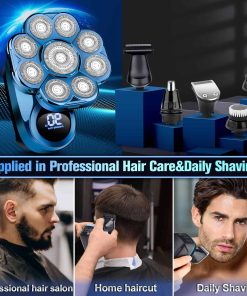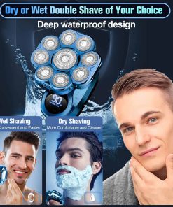 Afeitadora de Cabezal Desmontable 9D Actualizada: ¡perfecta para la experiencia de afeitado definitiva de los hombres! Con un diseño de 9 cuchillas, esta afeitadora eléctrica te proporciona una experiencia de afeitado cómoda sin igual y es una bendición para aquellos que anhelan una cabeza recién afeitada. ¡Dile adiós a la cuchilla tradicional, amplía el área de afeitado, no solo mejora la eficiencia del afeitado, sino que también ahorra tiempo! La cuchilla giratoria ultra flexible puede adaptarse inteligentemente al contorno de la cara y el cuello, convirtiéndose en tu mejor elección para el afeitado! ¡Características del Producto: Conjunto de afeitado versátil 6 en 1, pantalla LED y bloqueo de seguridad, ¡la pantalla LED muestra con precisión el porcentaje de carga de la batería! Recordatorio de batería baja, recordatorio de limpieza. Diseño impermeable, ya sea limpiando la cara o el cuerpo, esta afeitadora es fácil de usar. El diseño resistente al agua facilita la limpieza y te hace más conveniente y seguro durante el uso. Carga rápida de 2 horas de carga rápida y 90 minutos de uso. Se puede cargar con una computadora portátil, un automóvil o un banco de energía. Fácil de usar con un clic: esta afeitadora de cabeza es simple en diseño y fácil de operar. Solo presiona el botón, y podrás comenzar fácilmente a usar la afeitadora. El regalo perfecto para los hombres: el aspecto moderno y el diseño inteligente hacen de esta herramienta de afeitado para hombres un regalo ideal para padres, esposos, novios e hijos. Especificaciones del Producto: Tiempo de carga de la batería: 2 horas Tiempo de uso: 90 minutos Forma de Afeitado: afeitado rotativo Forma de Limpieza: lavable de cuerpo entero Condición de Uso: Húmedo y Seco Usos Recomendados para el Producto: Barba, Afeitado, Bigote, Rostro, Recorte Lista de Paquetes: 1 x Cabezal de Afeitado Flotante 9D 3 x Peines Limitadores (3/5/7/12 Mm) 1 x Cabezal Recortador de Nariz/Orejas 1 x Cabezal Limpiador Facial 1 x Cepillo Limpiador Facial 1 x Recortador de Cuerpo 1 x Cable de Carga USB