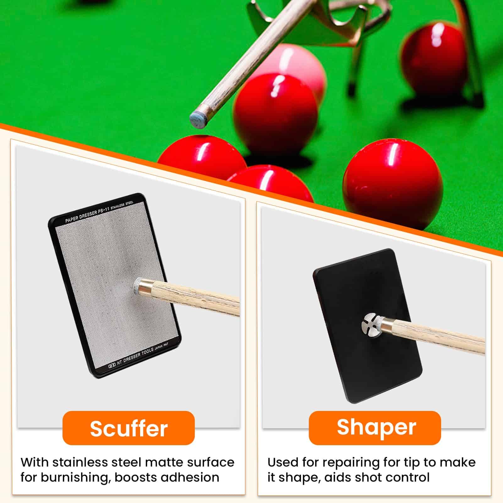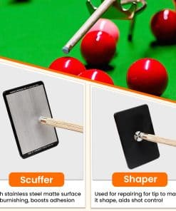 Multi Function 2 in 1 design pool cue tip shaper tool, one side with stainless steel matte for burnishing, the other side is used for repairing for tip to make it shape. No matter where you are, No matter how old the pool cue you use, it can provide new energy for this game. Excellent AccessoriesGreat accessory for your billiard pool stick care. Billiard Stick Tip Shaper is a must-have accessory for billiard enthusiasts. Prepare in advance and use Billiard Stick Tip Shaper when you need it. Carry-On Sizeit is only 3.54 * 2.24 * 0.20 inch in diameter. Ultra thin, small size, easy to carry. Billiard Stick Tip Shaper doesn’t take up space, so you can pack it in your bag when you’re out. Stable and ReusableThe shaper repair tool is reusable. Scuff for tip to help hold chalk better. Shaper, lightly scrape the tip using a rotating motion to contour the tip to the desired dome curvature you are comfortable with. Premium MaterialBilliard Stick Tip Shaper is made of good quality aluminum material, and Help your cue return to its original smoothness, can significantly improve your gaming experience.