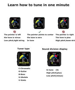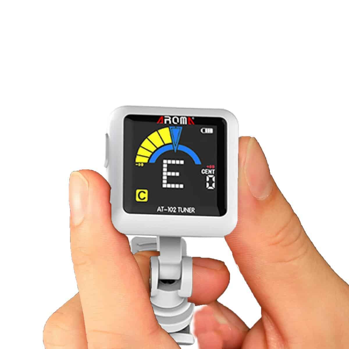 Coloca el afinador en tu instrumento, generalmente se coloca enfrente o detrás del instrumento. Funciona solo cuando se coloca en el instrumento.