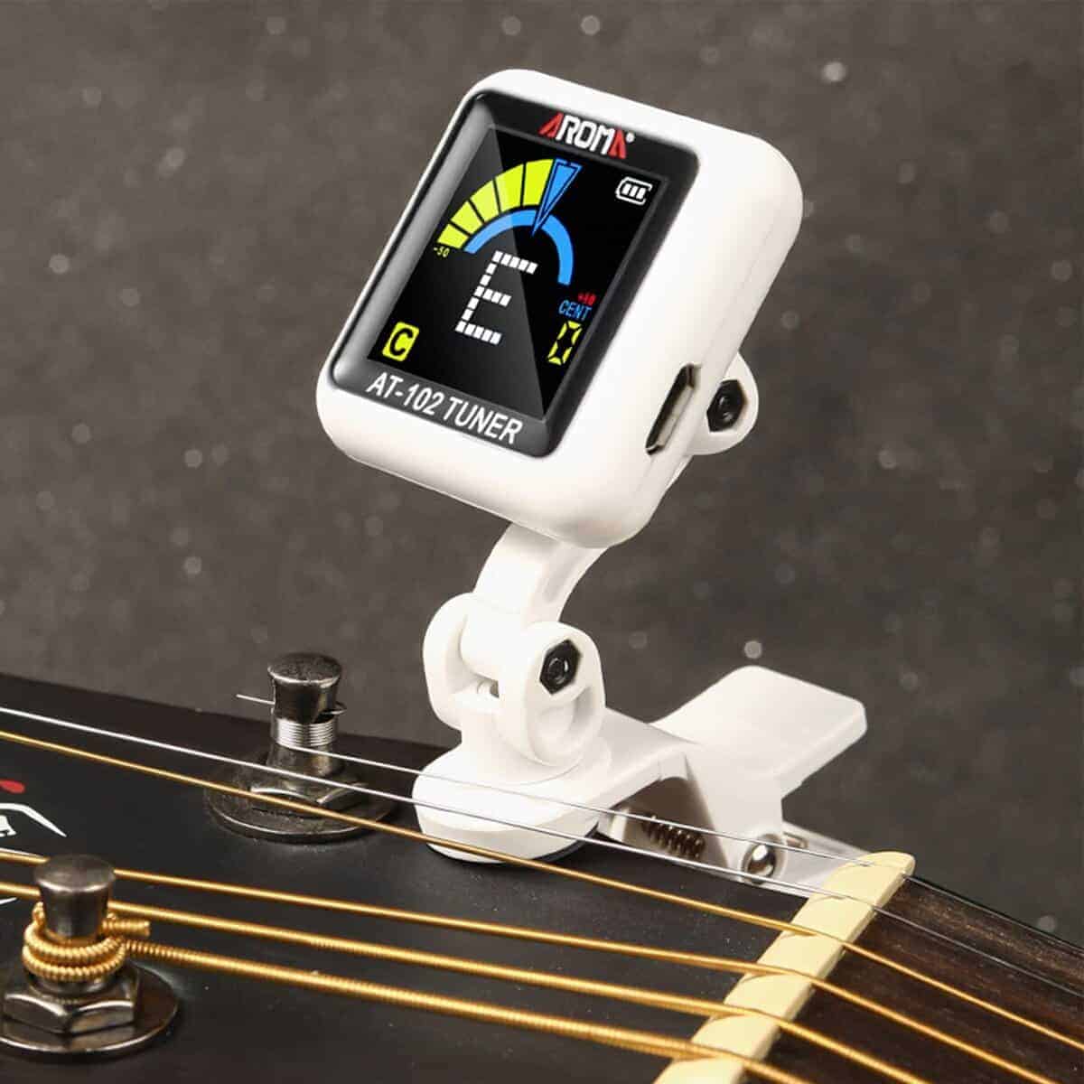 1. Coloca el afinador en tu instrumento y enciende la alimentación, ajusta su posición para tener un buen ángulo de visión.
