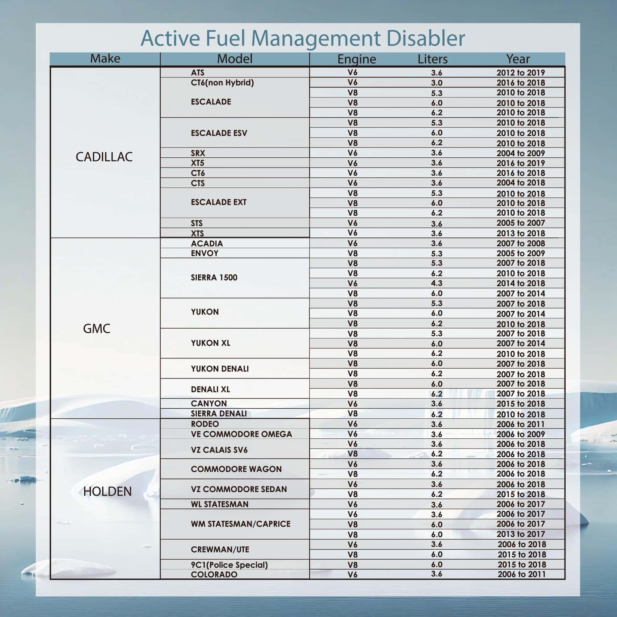 – NO compatible con los modelos Silverado y Sierra 2019+ con motores 5.3/6.2L y transmisiones de 10 velocidades.