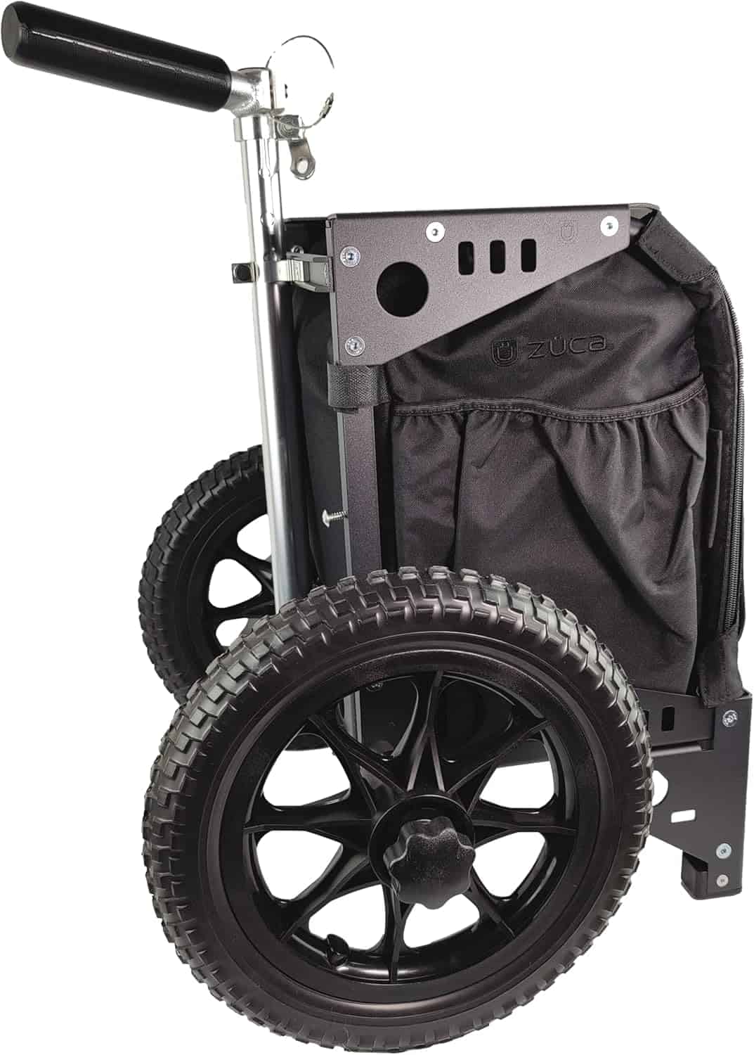 2. SE ADAPTA A TODOS LOS CARROS ZUCA – Todos los carritos de golf de disco ZUCA con mango de metal funcionarán con este agarre. El agarre se desliza ajustadamente sobre el mango y no se desprenderá, incluso al rodar sobre el terreno más accidentado.