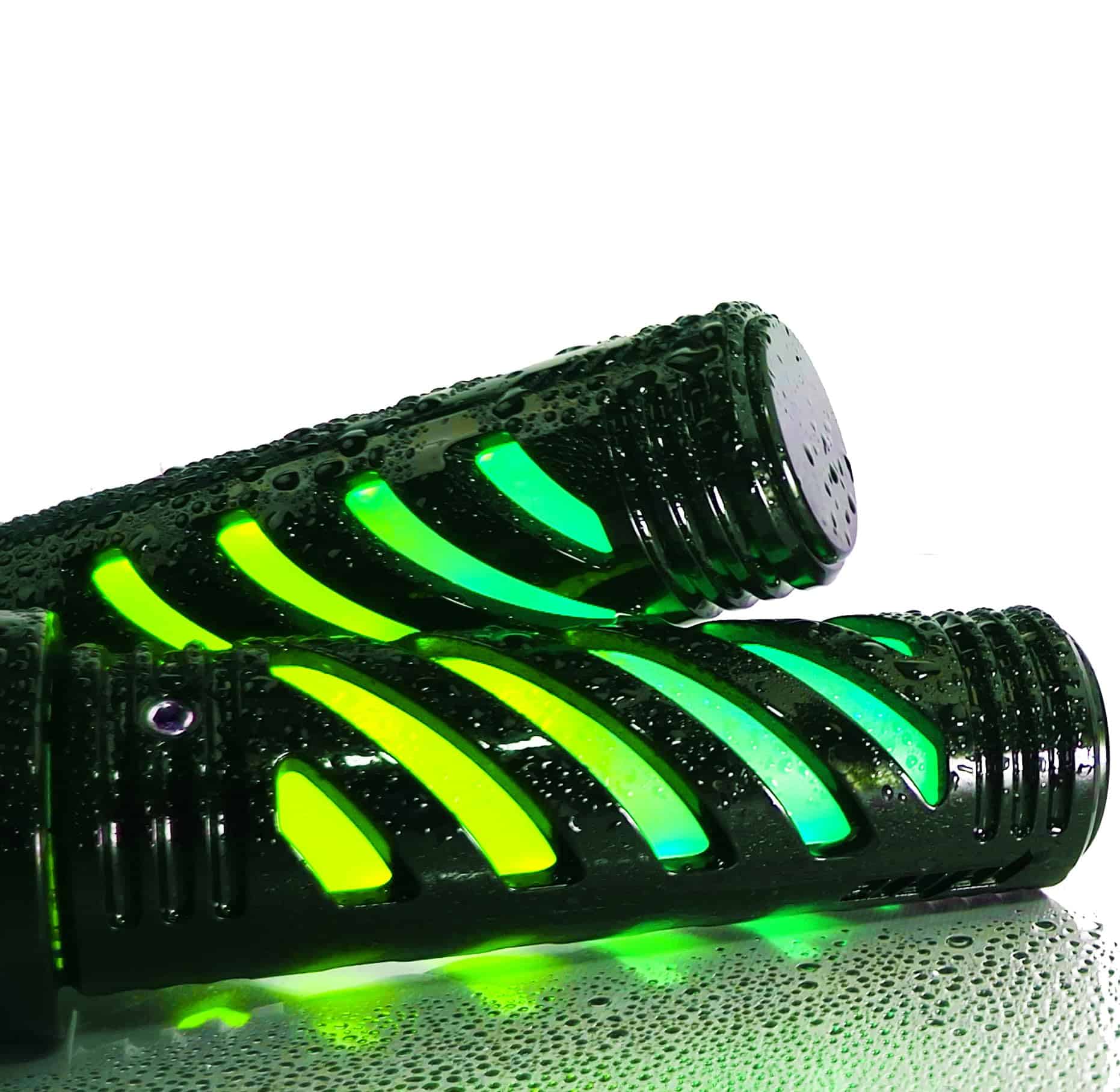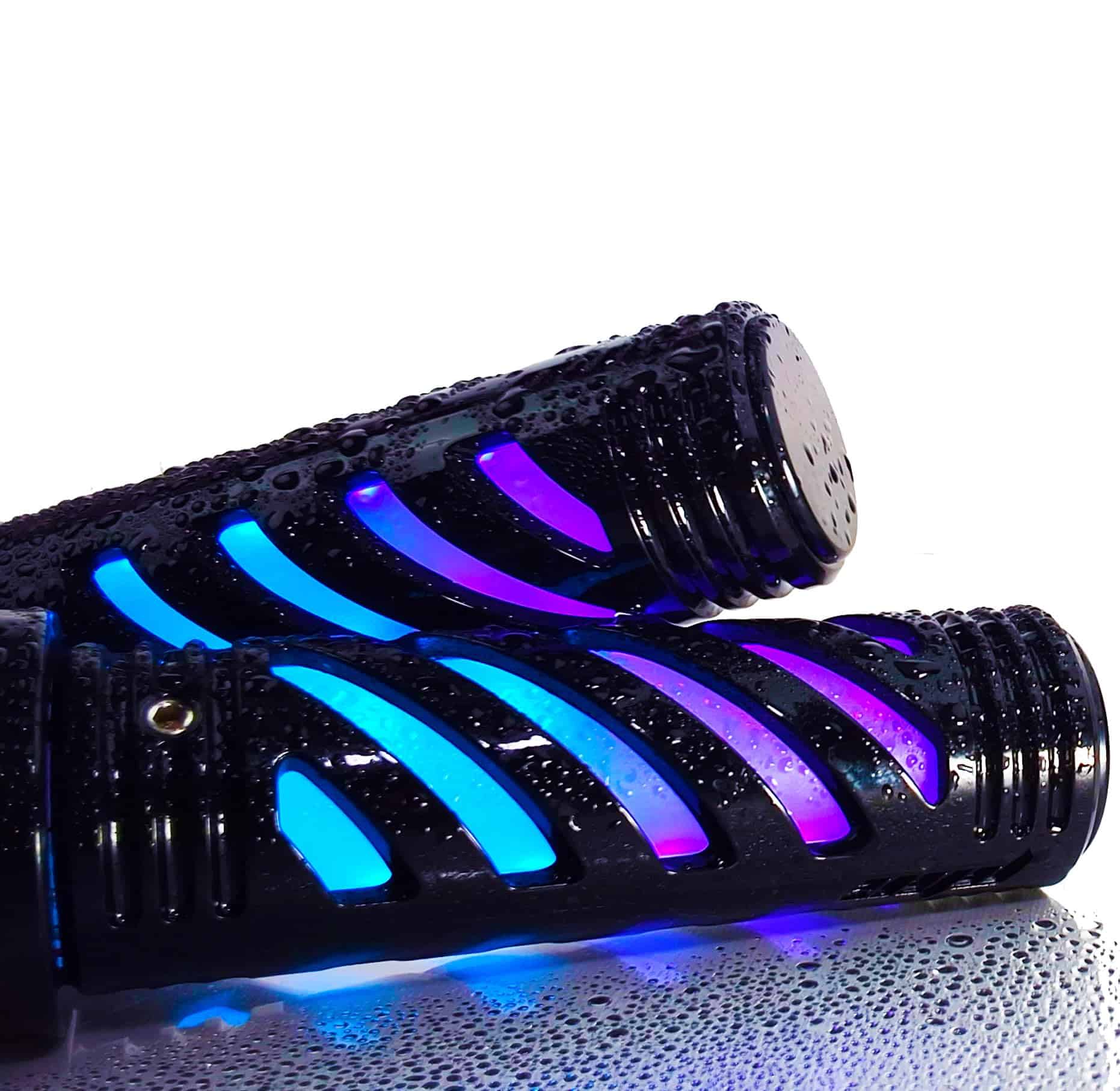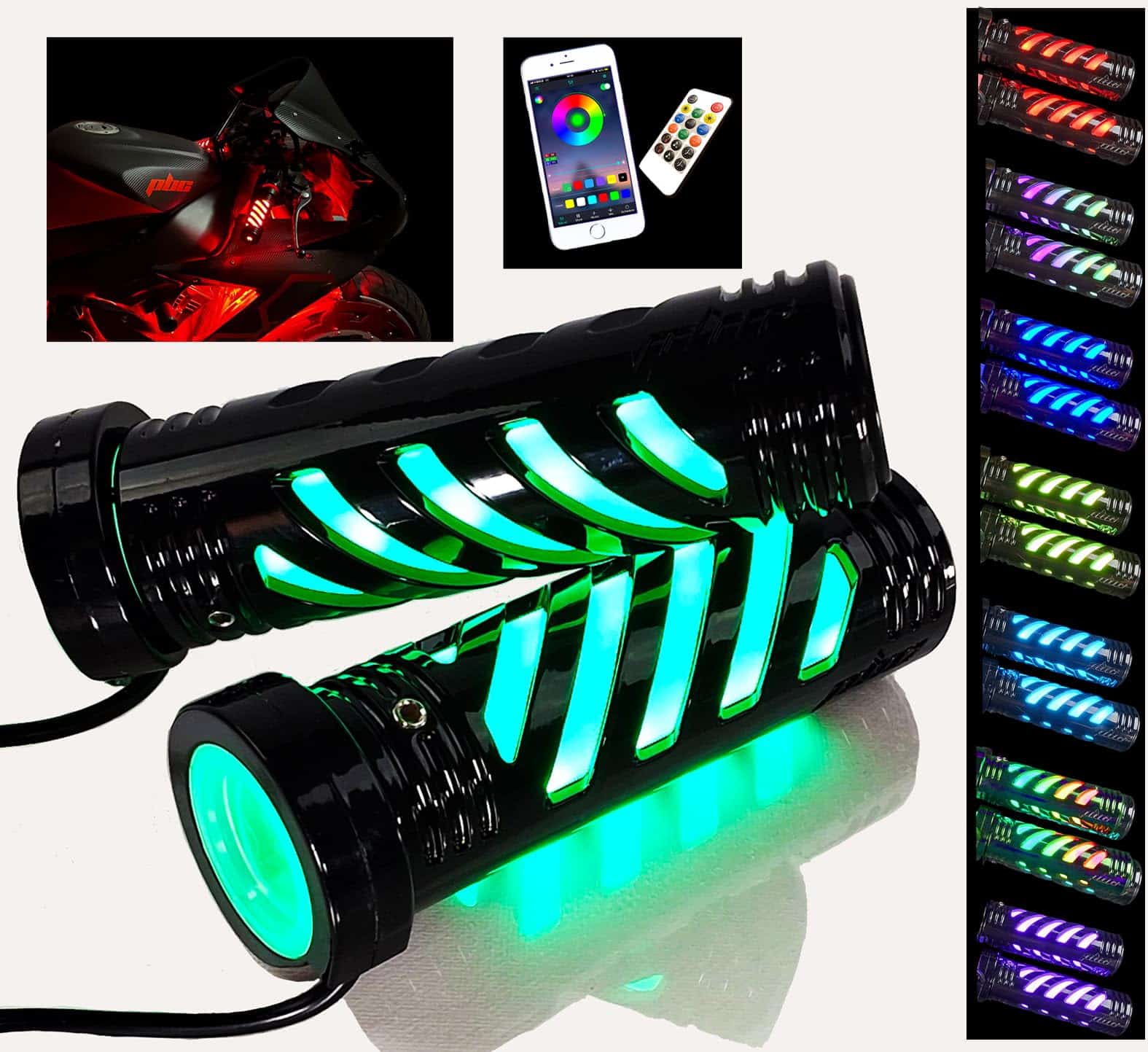 1. Agarres Iluminados: Luces LED RGB de varios colores integradas en los agarres de la motocicleta proporcionan una visibilidad mejorada y un brillo elegante.
