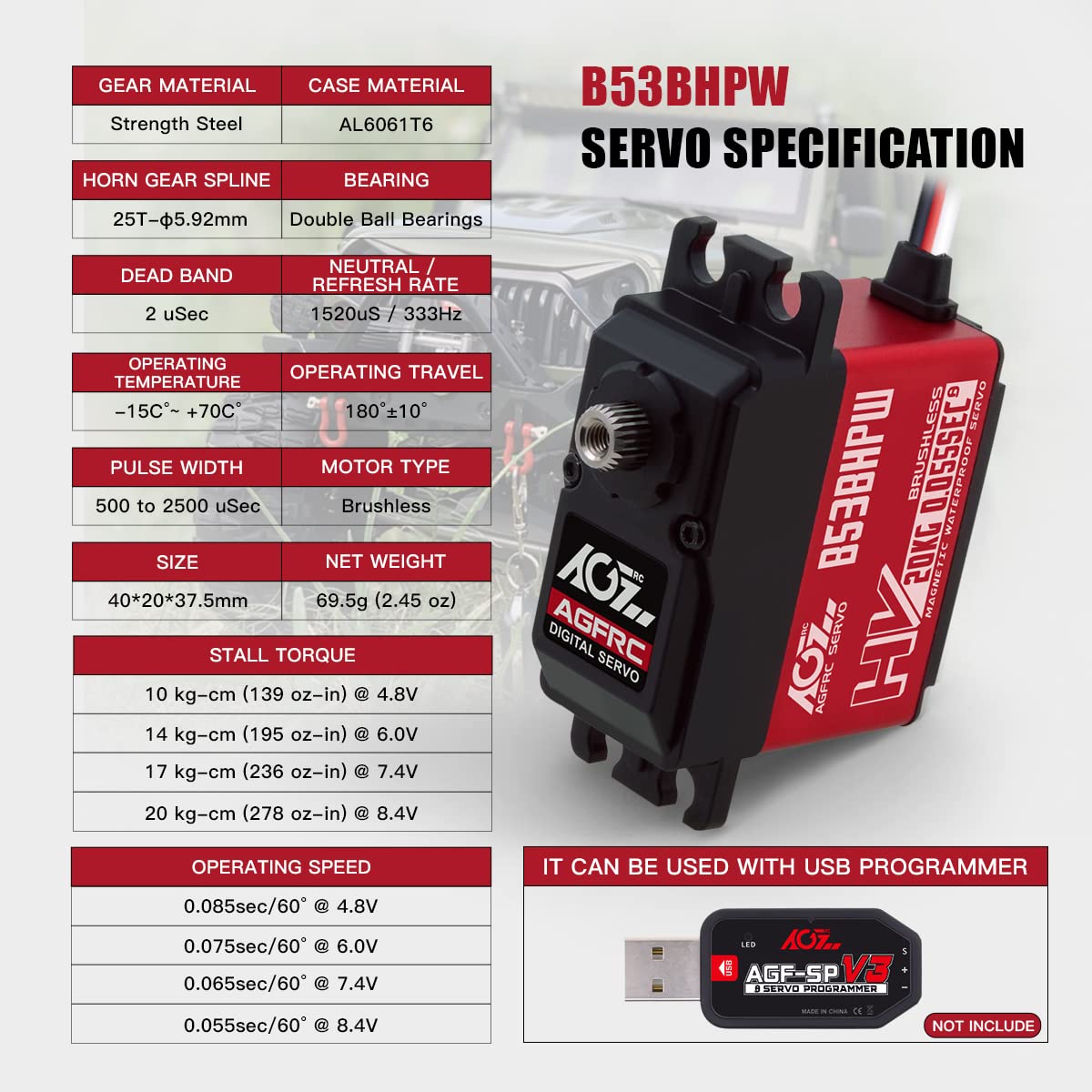 Paquete Incluido: 1 x Servo Digital AGFRC B53BHPW, 1 x Kit de Accesorios