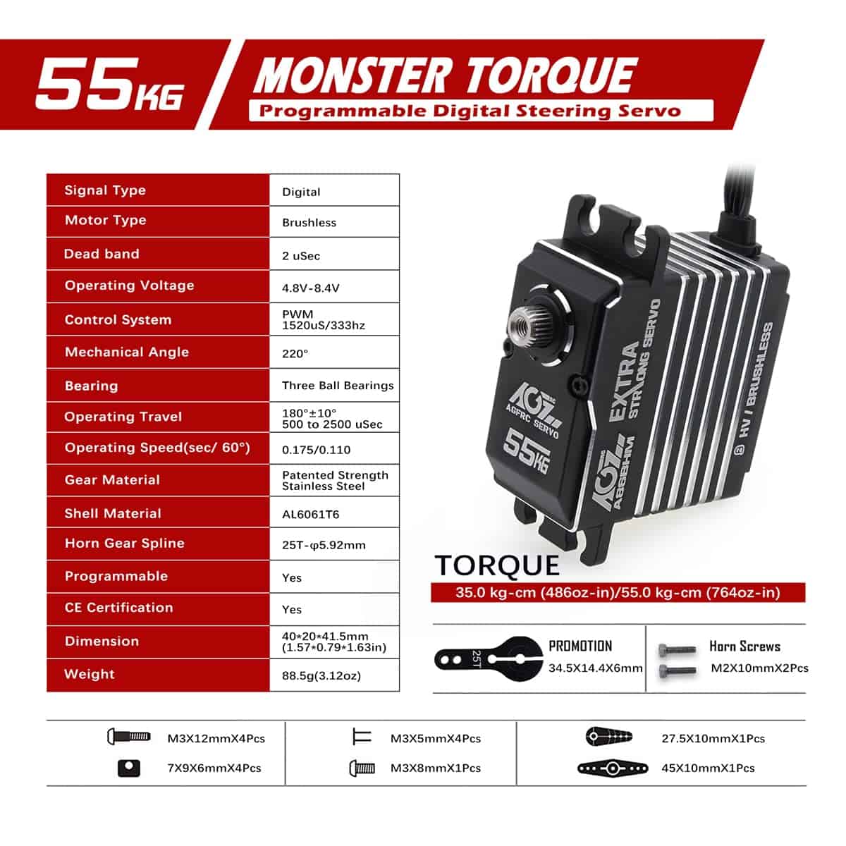 AGFRC 55KG Digital-Steering-Servo High-Torque Programmable