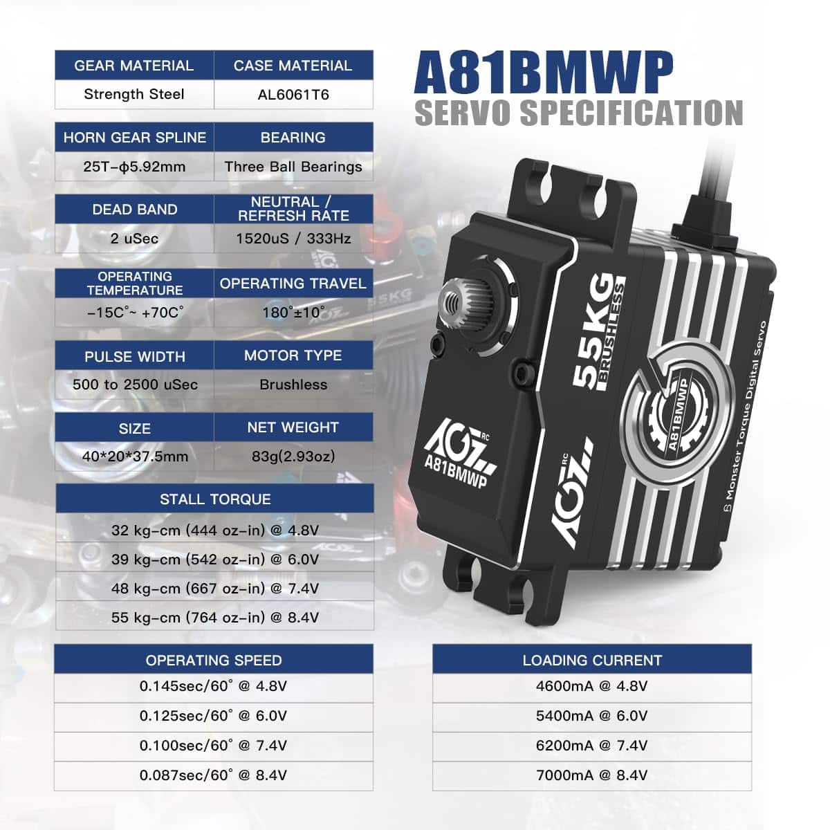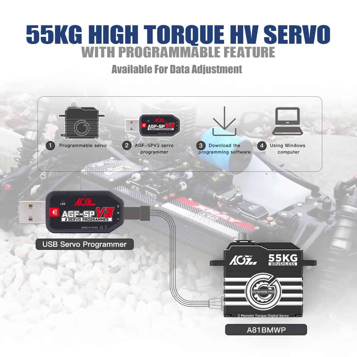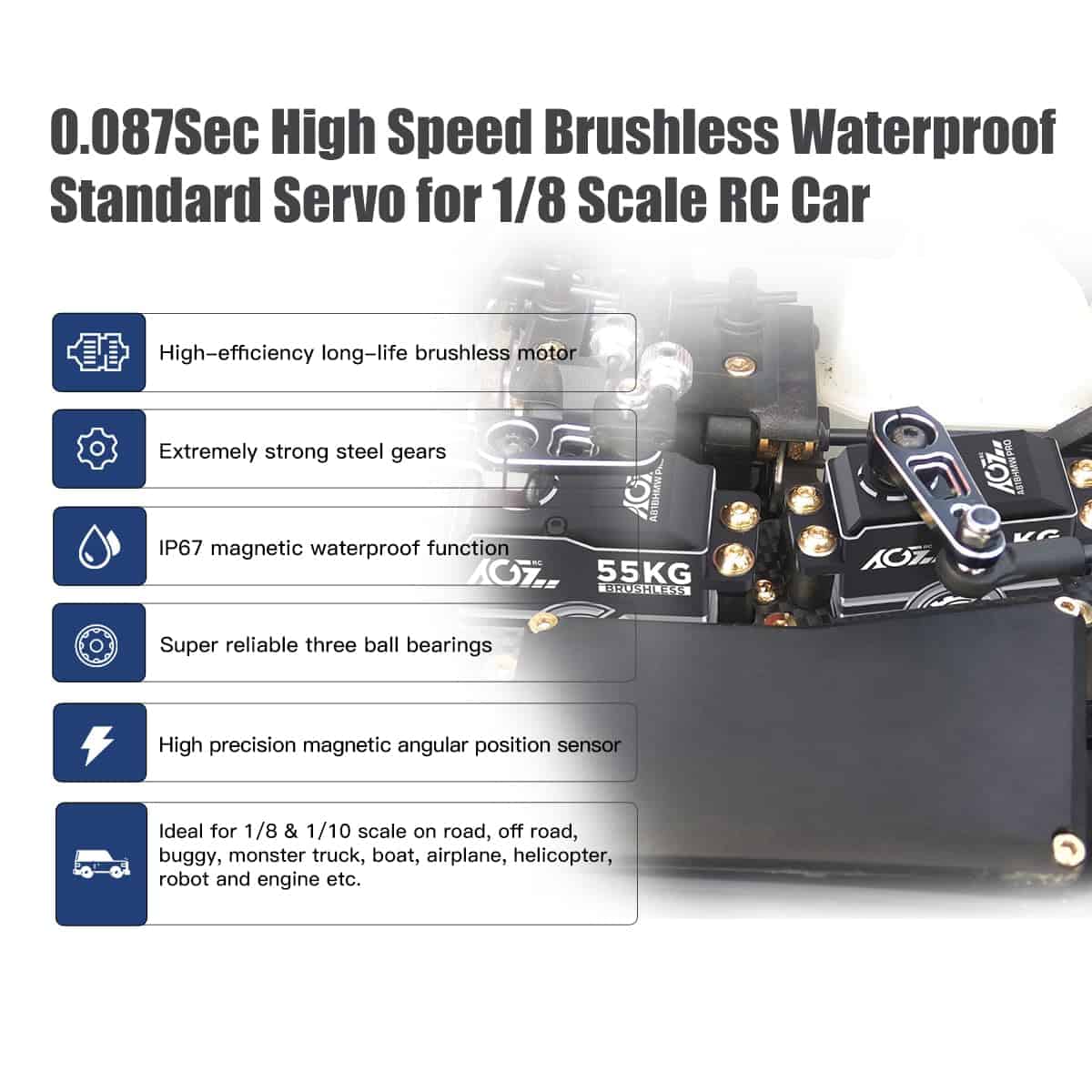AGFRC 55KG Waterproof RC Servo Motor High Torque –