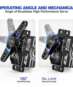 2. Alto Torque y Rendimiento – El torque máximo de este servo de dirección de alto torque brushless HV es de hasta 72 kg-cm (1000 oz-in) @ 8.4V y una velocidad de hasta 0.092seg/60 @8.4V. Equipado con motor brushless, cuatro rodamientos de bolas metálicos, carcasa de aluminio CNC completa, engranajes de acero completo, sensor de ángulo de imán.