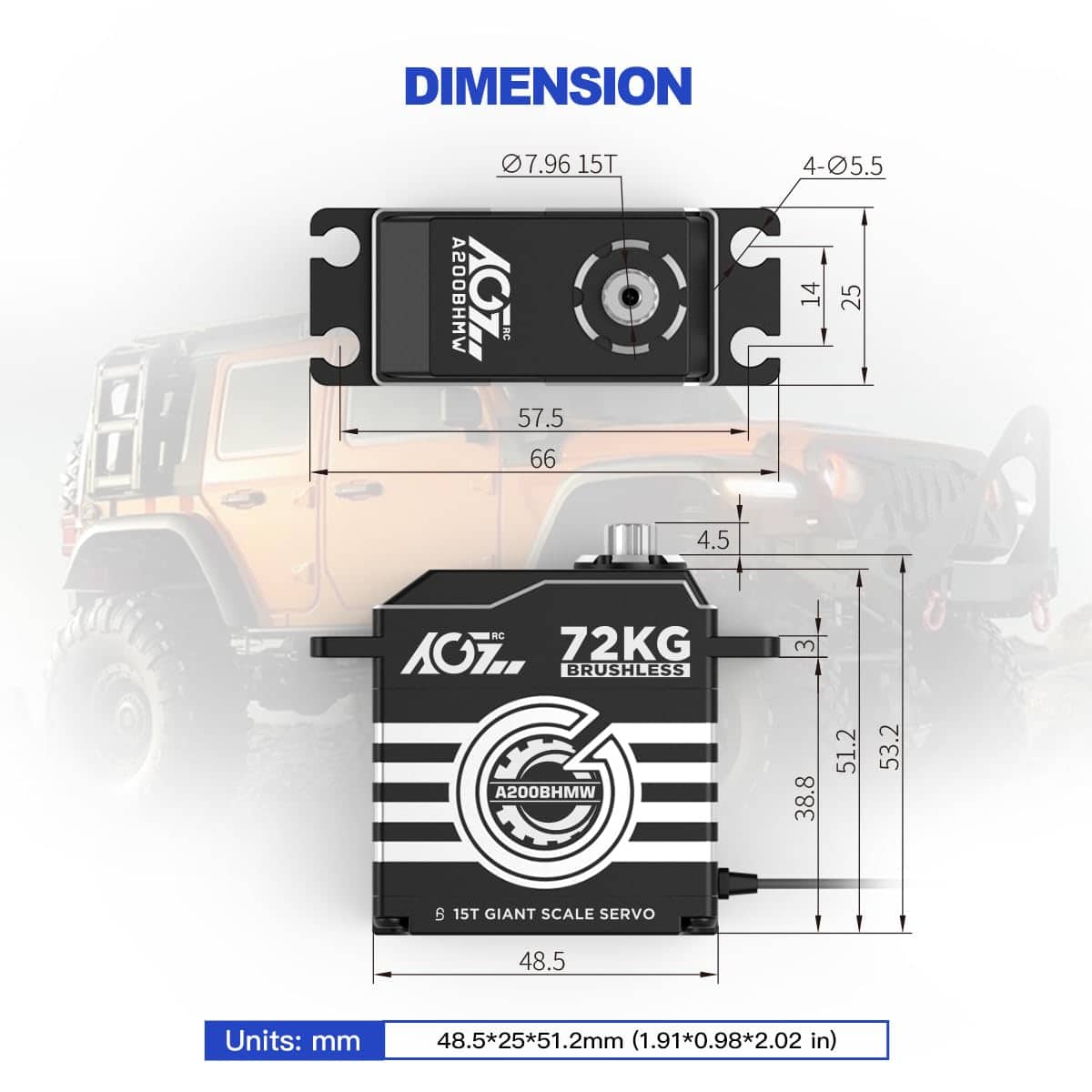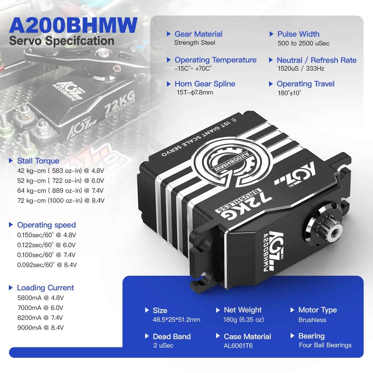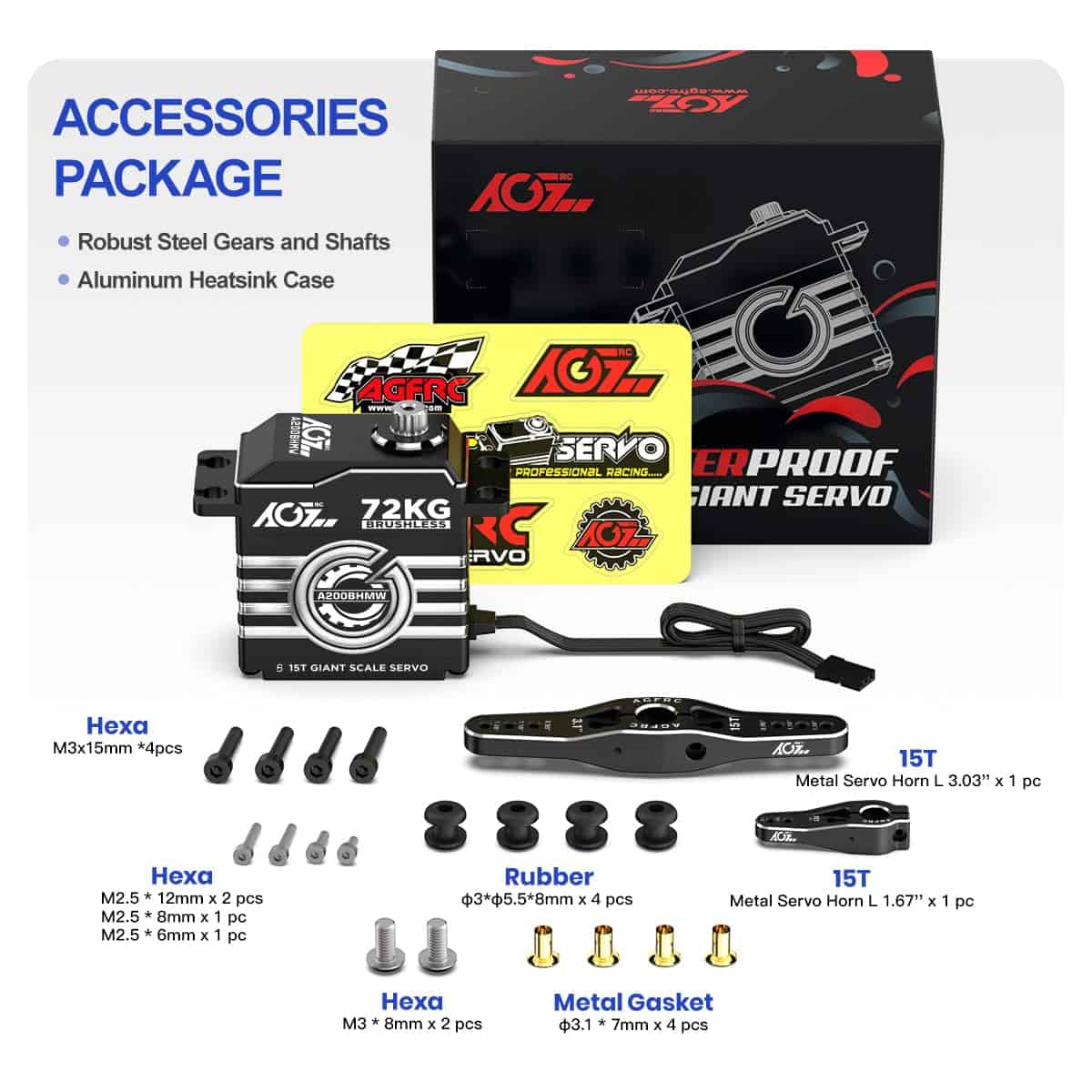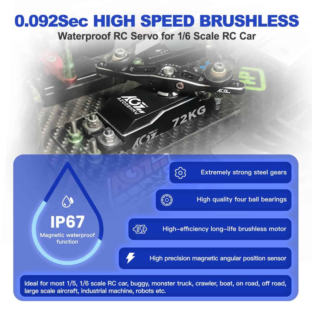 AGFRC 72KG Waterproof 1/6 RC-Servo-Motor de Alta Torque –