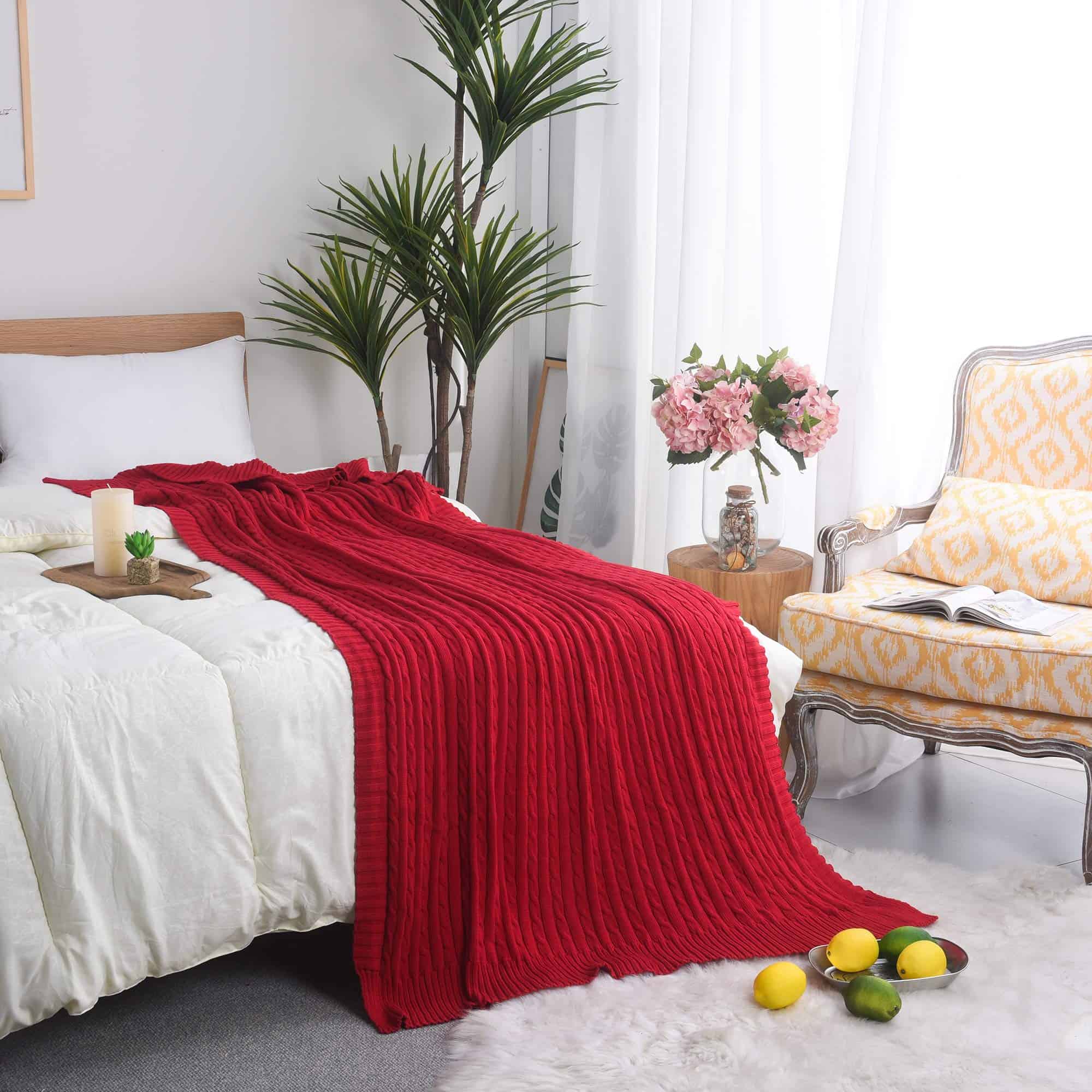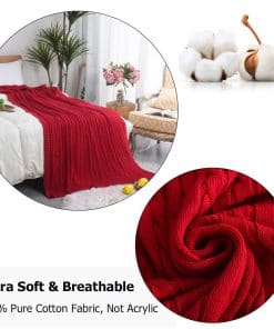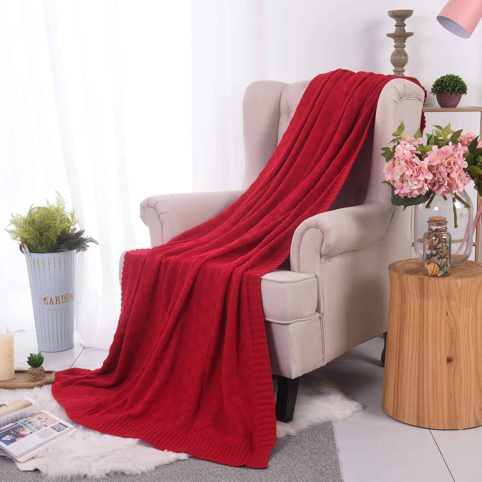 AGOOL Mantita Roja de Cable Tejido de Algodón para Sofá