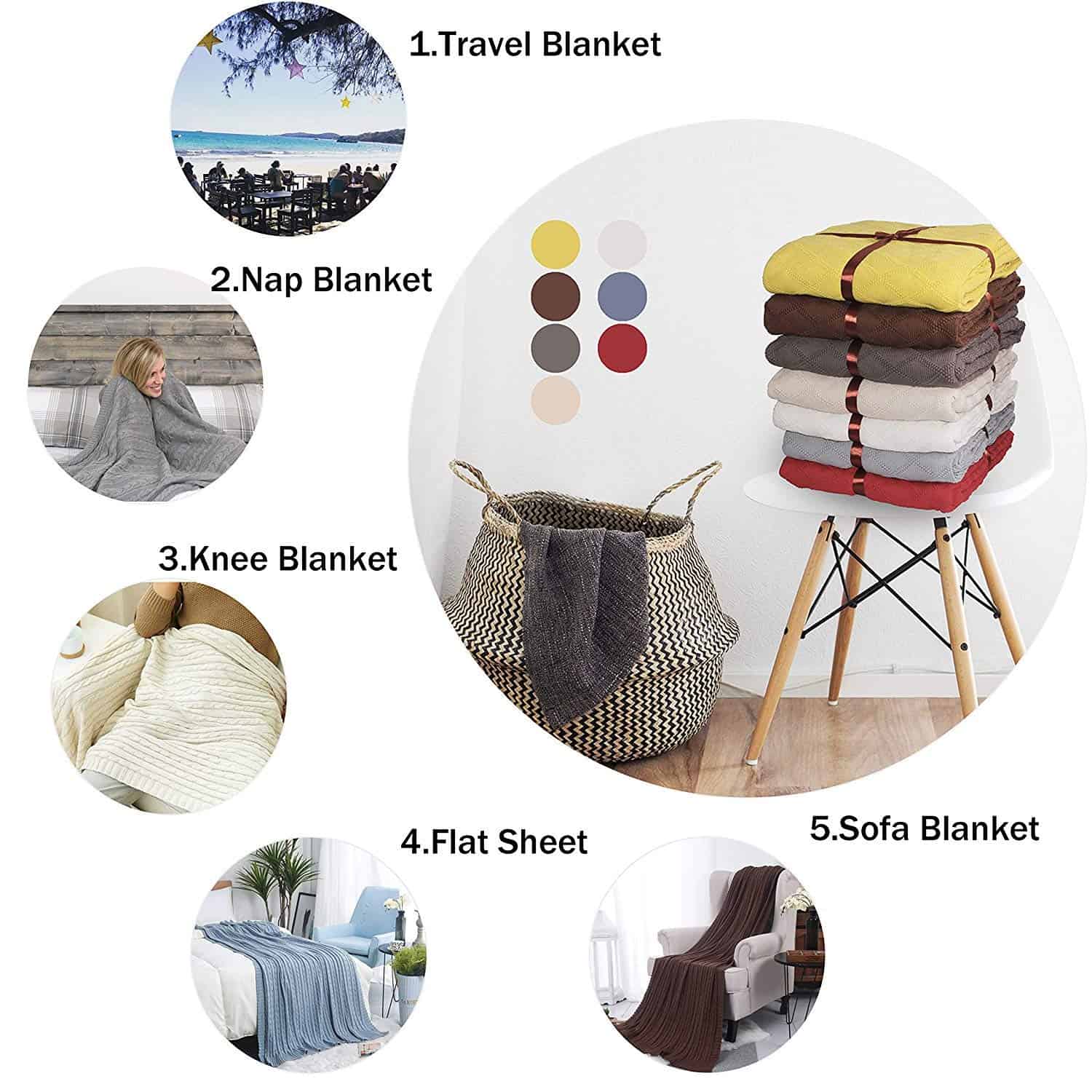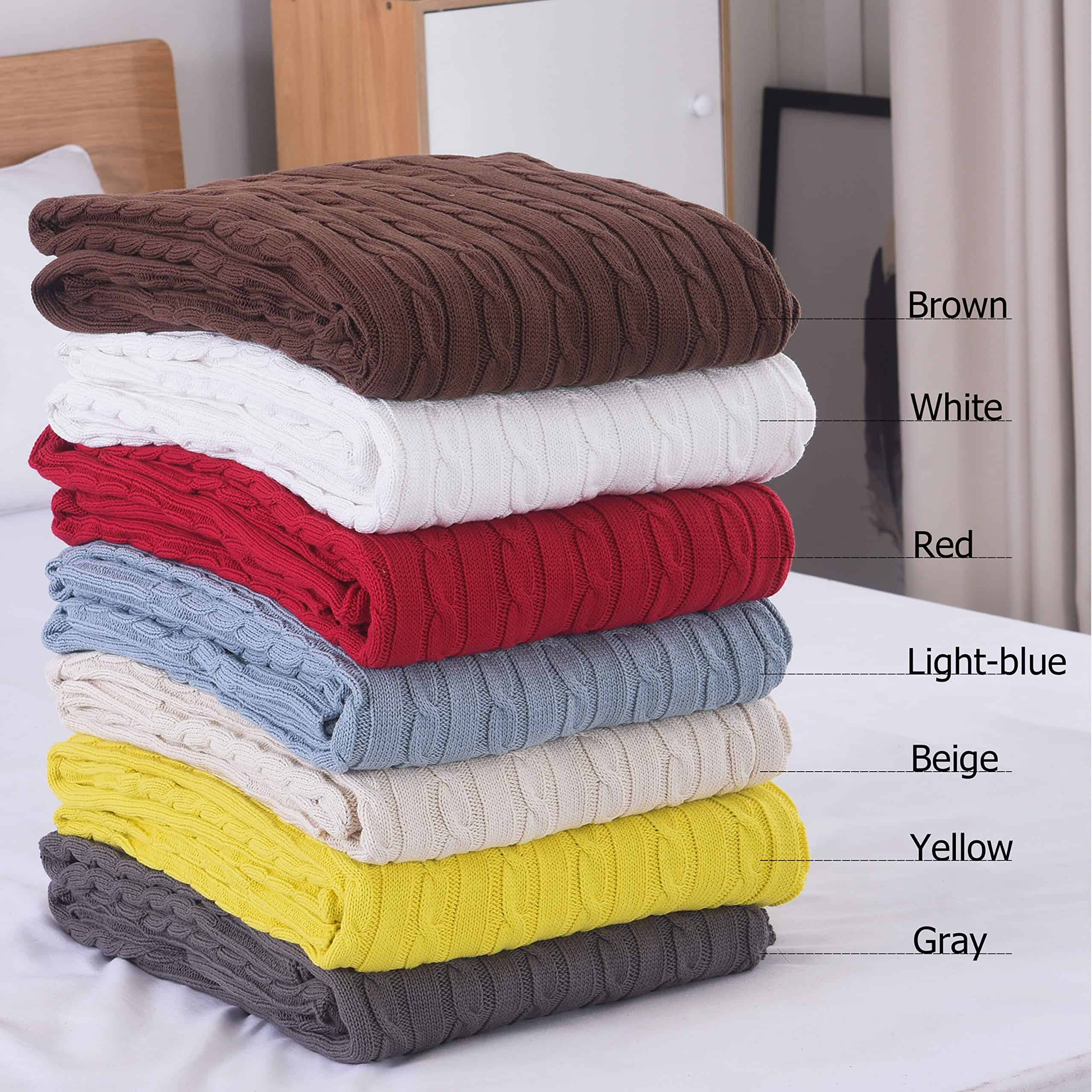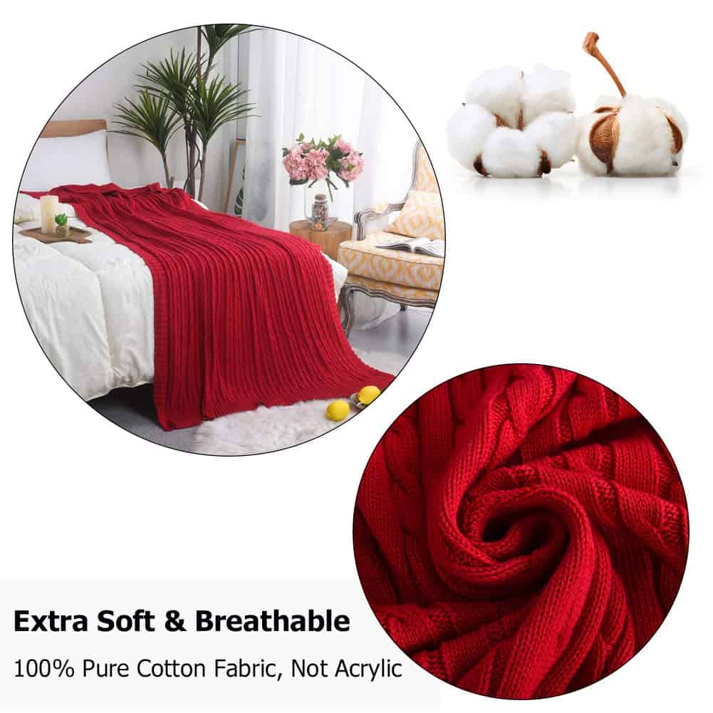 1. ¡SUAVE SUPERIOR: Manta de cable tejida de algodón, a prueba de contracción, resistente a la decoloración, resistente a las bolitas y ligera. Súper suave y sin estática.