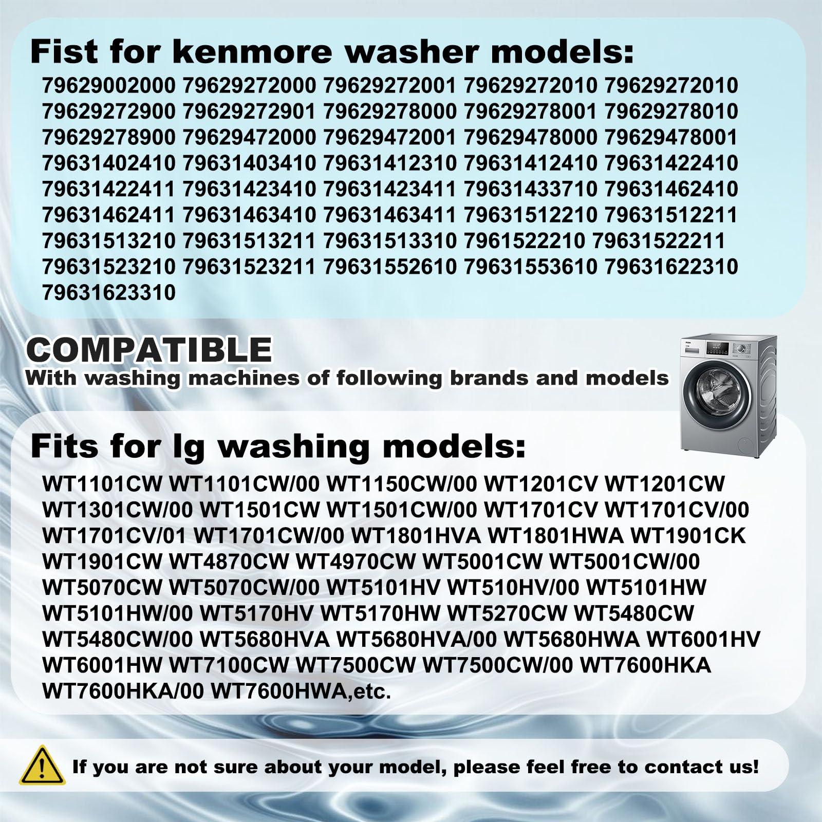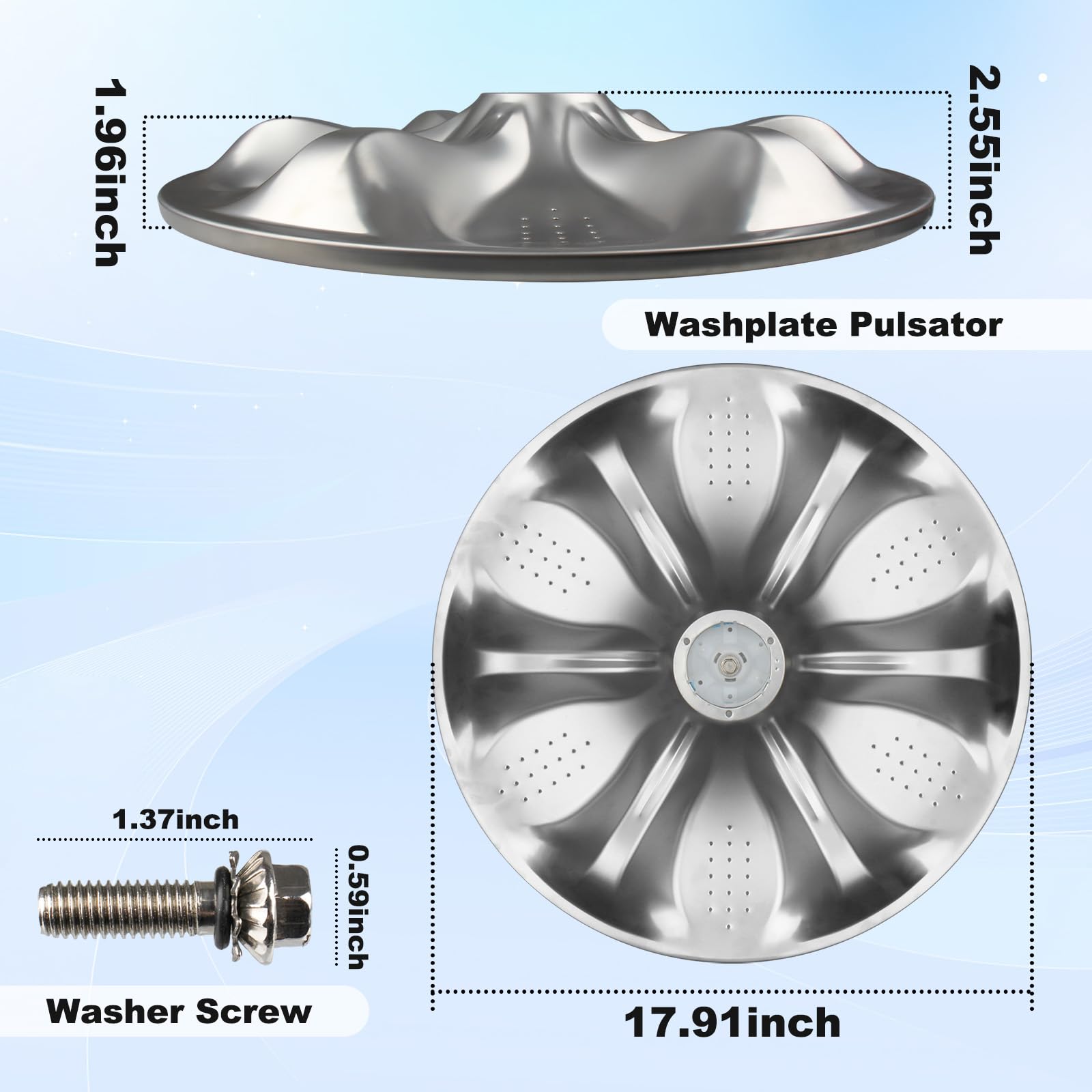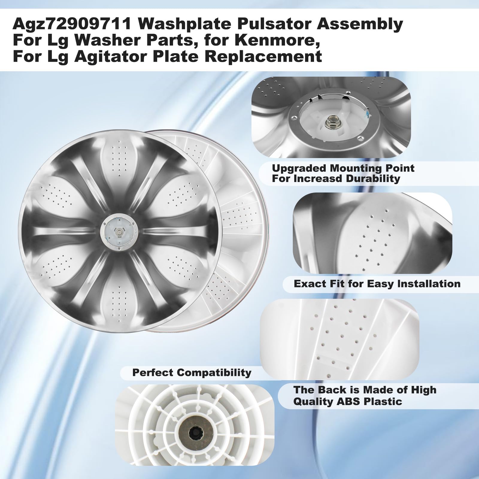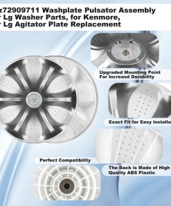 1. Lavadora de piezas Agz72909711 Washplate Pulsator Assembly, Para Kenmore, Para Sears Lavadora, Placa agitadora Número de pieza de repuesto: Agz72909702, Ps12588963, Agz72909703, Agz72909706, Agz73050601, Ap6800730,4873462 (Por favor, verifique el tamaño de su plato de lavadora y si el modelo es compatible antes de comprar). 2. Piezas de lavadora de alta calidad Hecho de materiales de calidad, la superficie está hecha de acero inoxidable y la parte trasera está hecha de plástico ABS de alta calidad, con alta durabilidad y ajuste al producto. Asegure una larga vida útil. (Consejos: asegúrese de que la lavadora esté apagada antes de la instalación). 3. Fácil de instalar La instalación del conjunto de Pulsador Agz72909711 es simple y rápida. Simplemente abra la cubierta, quítela con un pequeño destornillador y retire los pernos individuales con un socket de 10 mm. Desconecte y apague la alimentación y el suministro de agua a la máquina antes de realizar cualquier reparación. Desprenda la tapa del pulsador, instale el nuevo agitador, apriete los tornillos y cierre la cubierta. 4. Conjunto de Lavadora Agz72909711 Washplate Pulsator 796.29002000, 796.29002010, 796.29272000, 796.29272010, 796.29272900, 796.29278000, 796.29278010, 796.29278900, 796.29472000, 796.29478000, 796.29272001, 796.29272901, 796.29278001, 796.31402410, WT1101CW, WT1201CV, WT1201CW, WT1701CV, WT1701CW, WT4870CW, WT4970CW, WT5001CW, WT5070CW, WT5101HV, WT5101HW, WT5170HV, WT5170HW, WT5270CW, WT5480CW, WT5680HVA, WT5680HWA, WT6001HV, WT6001HW, etc. 5. Contenido del paquete 1 pieza de repuesto de la lavadora, 1 tornillo (Consejos: asegúrese de que la lavadora esté apagada antes de la instalación). 6. TENGA EN CUENTA Este conjunto de pulsador de washplate Tamaño es de 18 pulgadas (diámetro). Si encuentra que el tamaño del producto es inconsistente o hay algún otro problema, ¡contacte con nosotros que le responderemos y lo resolveremos en un plazo de 12 horas!