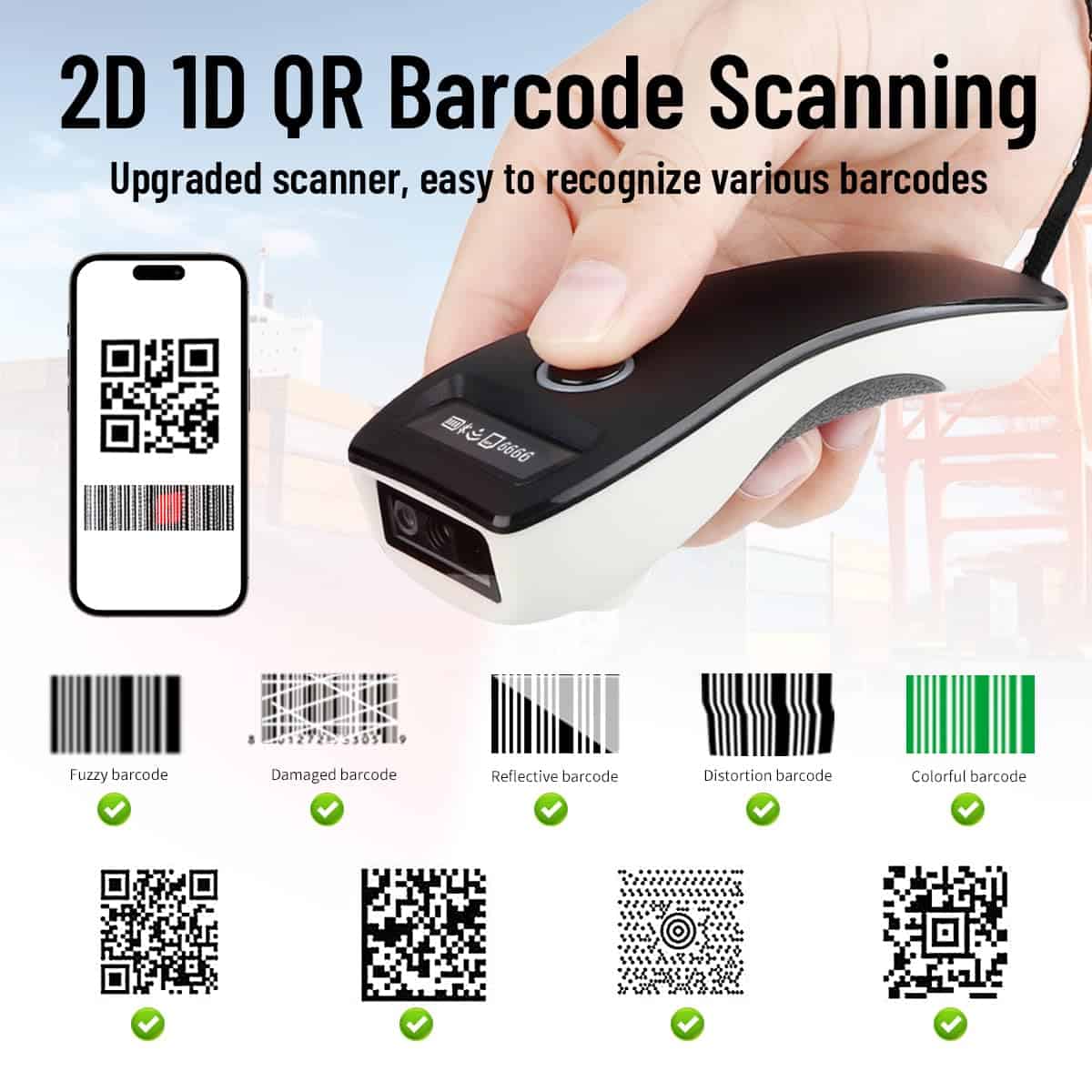 AHANIN Escáner de Código de Barras Inalámbrico 1D 2D QR