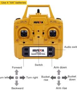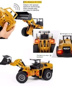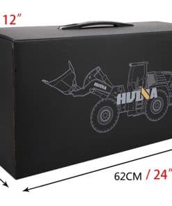 LISTA DE EMPAQUE: 1 Wheel Loader, 1 control remoto (excluyendo baterías del control remoto), 1 batería, 1 manual USB 1 Tamaño de la caja: aproximadamente 24″(L) 10″(W) 12″(H).