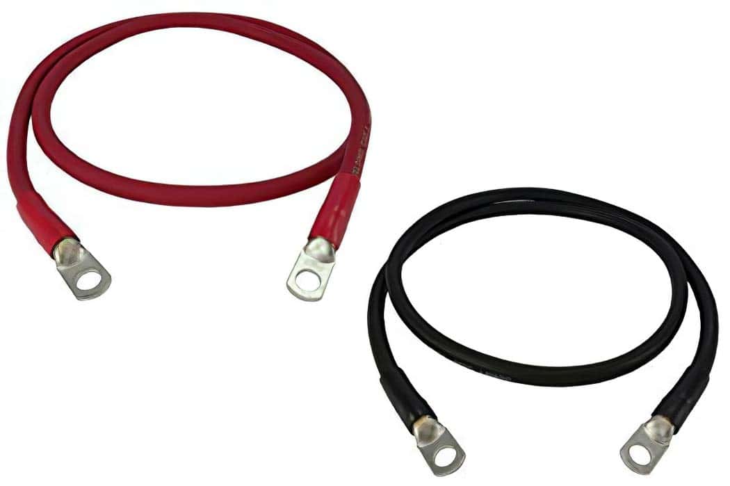 Utilizar con inversores de 12 Voltios 3000 Vatios o más pequeños. Ambos extremos enganchados. Diámetro del cable de 9/16 pulgadas Diámetro del terminal de 5/8 pulgadas 1/0 AWG 105 C – 600/1000 Volt «CT» Aprobado FT4 Valorada conductor extra flexible con cobre desnudo moldeado suave según las especificaciones de ASTM B172. UL 1338 y UL 10070.