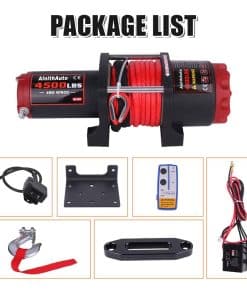AinithAuto 4500 lb Malacate Eléctrico con Control Remoto Inalámbrico es un kit de malacate potente y estable diseñado para una variedad de aplicaciones, incluyendo UTV, SXS, remolques de coches y remolques de utilidad. Con una capacidad de tracción de 4,500 libras, este malacate es ideal para situaciones de remolque y recuperación. El malacate cuenta con un motor de 12V DC de 2.0HP y un sistema de engranaje de 3 etapas planetario que proporciona un embrague de liberación de extracción y giro. La cuerda sintética de 1/2″ x 43 pies es flexible y de alta resistencia, lo que la convierte en la opción ideal para arrastrar un ATV atascado en el barro. Además, el malacate incluye un control remoto inalámbrico que te permite operarlo a distancia, así como una placa de montaje estándar para una fácil instalación. Con el servicio de satisfacción premium de AinithAuto, puedes estar seguro de que recibirás la mejor calidad y atención al cliente. ¡No dudes en contactarnos si tienes alguna pregunta o inquietud!