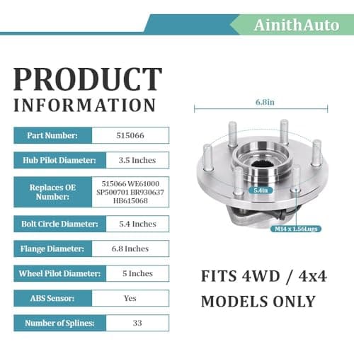AinithAuto Maza de Rueda Delantera y Cojinete de Cubo