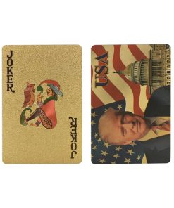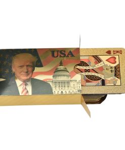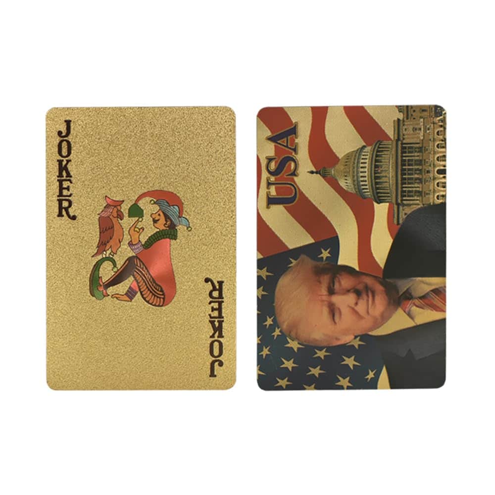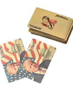 Alta calidad de papel con lámina de plata y una superficie en relieve profunda con el presidente de Estados Unidos Donald Trump impreso en ella. Ideal para todos los juegos de cartas: bridge, pesca, poker, euchre, corazones, blackjack, canasta, texas, pinochle, baccarat, noche de casino y más.
