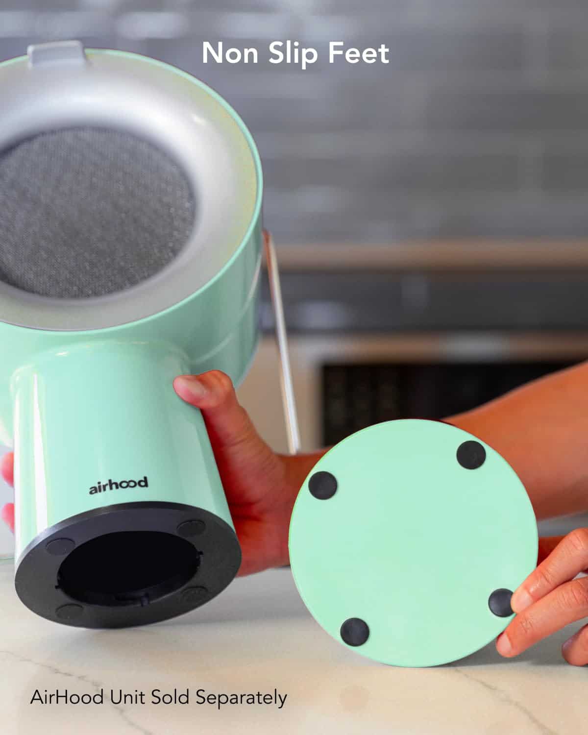 Airhood Base Boost es el complemento perfecto para tu campana extractora portátil. Eleva la altura de tu ventilador de escape de cocina para adaptarlo a distintas alturas, permitiéndote cocinar con comodidad y eficacia. Con cuatro patas de silicona antideslizantes, este accesorio mejora la estabilidad de tu campana extractora mientras cocinas en la estufa. Ajusta la altura de tu ventilador de escape de 13.1 pulgadas a 15.1 pulgadas de forma sencilla y sin complicaciones. ¡Disfruta de una experiencia culinaria sin preocupaciones con Airhood Base Boost en color verde menta!