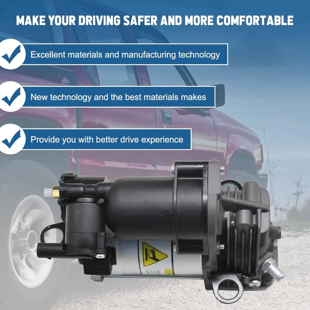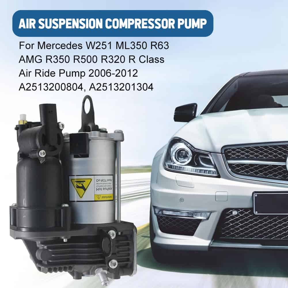 Números de pieza OEM: 2513202704, 2513200104, 2513200604, 2513201204, 2513200904. Compatible con Mercedes-Benz W251 ML350 R63 AMG R350 R500 R320 R Class 2006-2012. Ofrecemos 12 meses de garantía para este producto. El paquete incluye: 1 PC Compresor de suspensión neumática (Debe reemplazar el relé al reemplazar el compresor de suspensión, también debe limpiar todo el conducto para eliminar el agua al reemplazar el compresor de suspensión neumática).