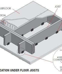 Los Aisladores de Suelo U-Boat de Goma EPDM (también conocidos como Damping Shoes o C-Channel Suspension Isolators) soportan y aíslan acústicamente miembros del marco del suelo, es decir, viguetas, para disminuir las ondas de sonido que pasan de un lado de la estructura al otro. Los U-Boats están extruidos de Goma EPDM que está formulada para reducir o eliminar vibraciones. Dimensiones/Especificaciones: Los U-Boats están moldeados para acomodar dimensiones estándar de viguetas y ajustarse alrededor del borde de cualquier viga de 2 por X. Ancho: 1.5″ (38.1mm) Altura: 2.125″ (54.0mm) Longitud: 2″ (50.08mm) Grosor: Laterales – .313″ (7.9mm); Base – .5″ (12.7mm) Color: Negro Alta Calidad: Hecho en EE. UU. Qué es EPDM: La Goma EPDM (Etileno-Propileno-Dieno-Monomero) es comparabla con la Neopreno, sin embargo, la supera en rendimiento y es una opción más ecológica. Específicamente, tiene una resistencia excepcional a la abrasión, fluidos hidráulicos, álcalis, calor, ozono y condiciones climáticas. Cuántos necesito: Si la separación entre viguetas es de 24″ OC, los U-Boats deben instalarse a un mínimo de 16″ OC a lo largo de la viga y no deben exceder los 24″ OC. Si la separación entre viguetas es de entre 12″ y 16″ OC, los U-Boats deben instalarse a un mínimo de 16″ OC a lo largo de la viga y no deben exceder los 32″ OC. CONSEJO: Si la separación entre viguetas es de 16″ OC con U-Boats instalados a 16″ OC en la viga, multiplique el total de pies cuadrados de su habitación por 2/3 para calcular la cantidad aproximada de U-Boats necesarios.