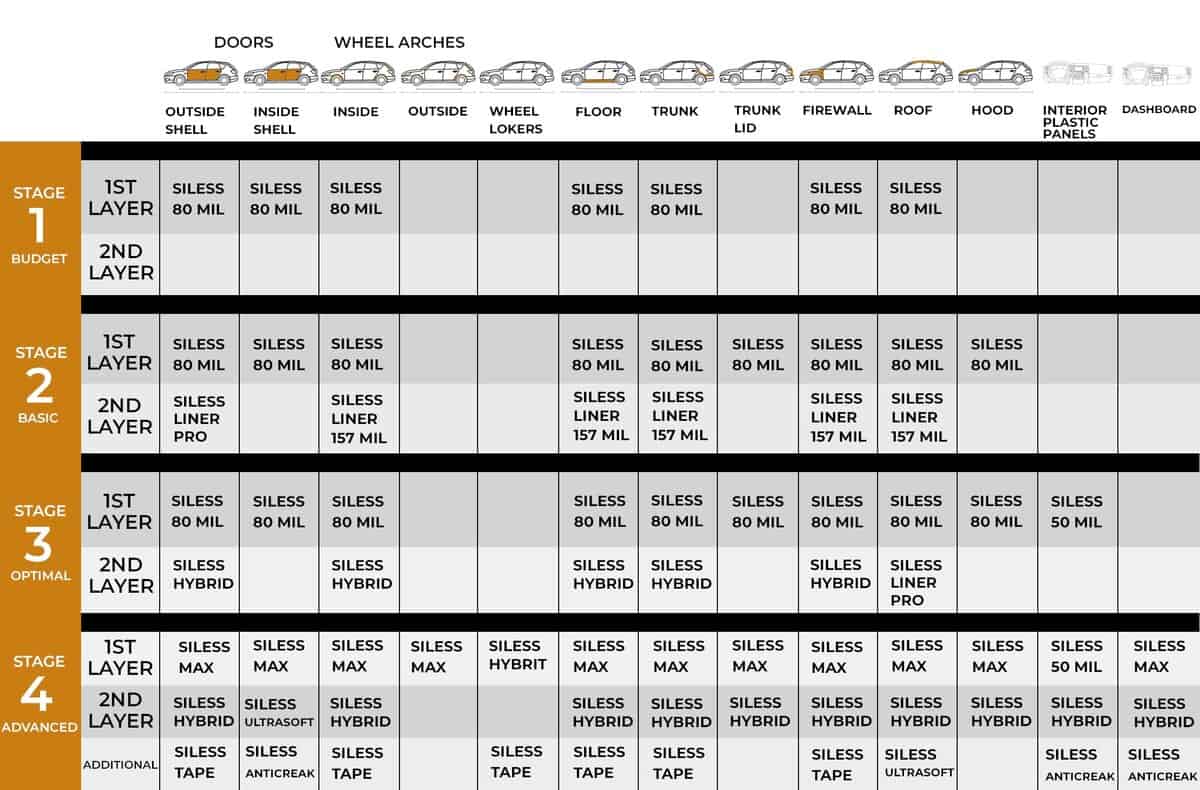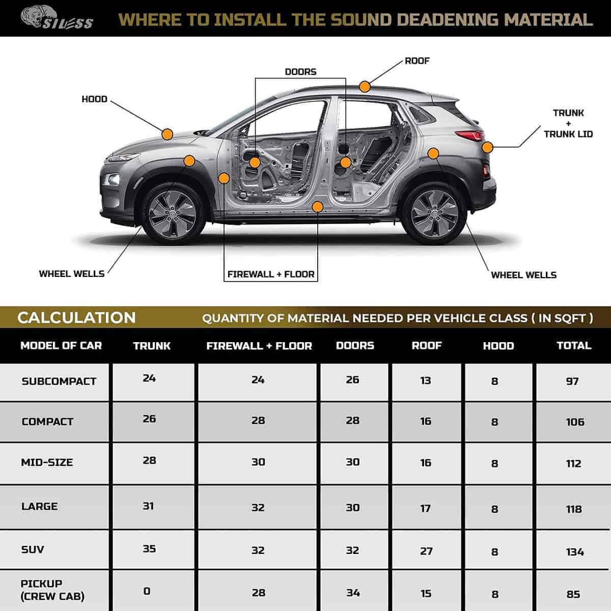 Aislamiento acústico para coche Siless 80 mil (2mm) 18 sqft