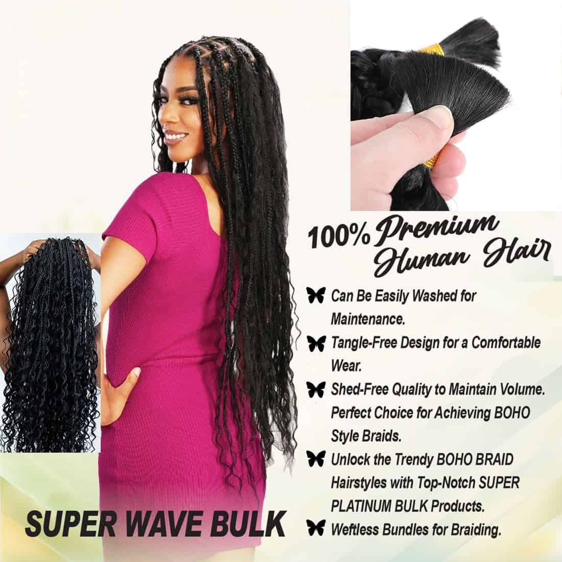 AIVICO Extensión de Cabello Humano Trenzado Ondas Profundas