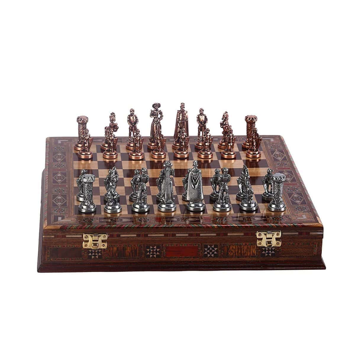 PIEZAS HECHAS A MANO. Las figuras del juego de ajedrez de metal se fabrican en Turquía con mano de obra de alta calidad y hechas a mano con recubrimientos y pinturas especiales sobre materiales de primera calidad y moldeo. ESTAMOS USANDO ZAMAK COMO MATERIAL DE MOLDEO. La aleación de zinc es una aleación metálica y sus componentes principales son zinc, aluminio, magnesio y cobre. HAZ FELICES A LAS PERSONAS QUE AMAS. No es solo un juego, también es un objeto de decoración muy bonito y una gran idea de regalo. LOS TABLEROS DE AJEDREZ DE MADERA SÓLIDA siempre son más costosos porque son más costosos de producir. Los tableros ‘personalizados’ suelen ser siempre de madera sólida. Atraen a aquellos que buscan verdadera calidad y un tesoro familiar. Se espera que un tablero de ajedrez de madera maciza verdaderamente bien hecho dure generaciones.