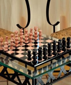Ajedrez ‘Gloriosa Batalla’ de Mármol Rosa y Negro Tallado a
