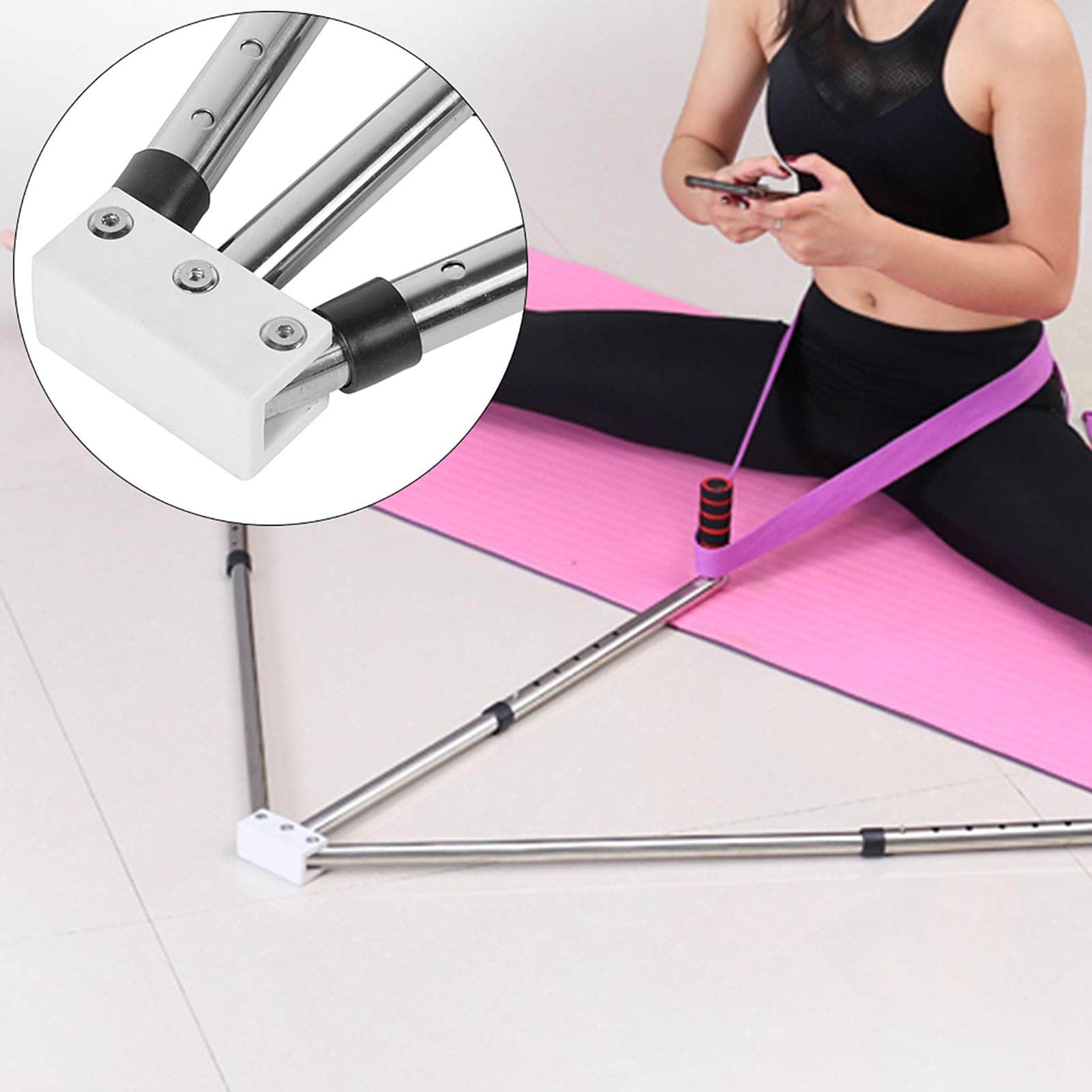 Característica: 1. Hecho de material de acero de alta calidad, resistente y máxima durabilidad. 2. Con múltiples agujeros de ajuste, según tus necesidades ajusta la longitud de la misma. 3. Puede ayudarte a dividir fácilmente las piernas para entrenarte en flexibilidad corporal. 4. Ligero, fácil de usar y almacenar. 5. Ampliamente utilizado para entrenamiento de estiramiento de ligamentos en las piernas.
