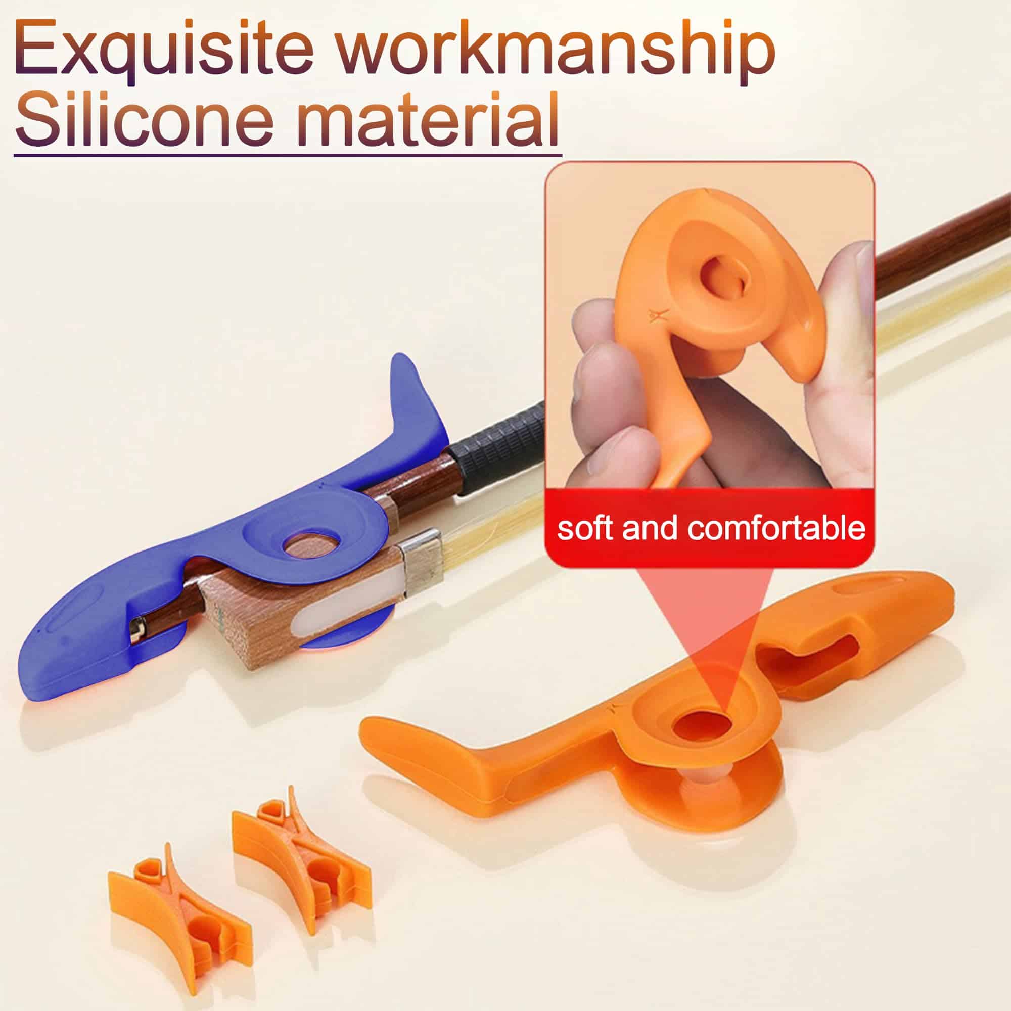 2. Diseño cómodo y ergonómico: Fabricado con silicona de alta calidad, el sostenedor de arcos de violín de silicona es suave, duradero y se adapta cómodamente a tu mano, garantizando una experiencia sin fatiga incluso durante largas sesiones de práctica. 3. Ajuste universal para todas las edades y niveles de habilidad: Este sostenedor de corrección de agarre de arcos de violín es adecuado tanto para principiantes como para entusiastas de violín, corrigiendo gradualmente la postura de agarre del arco en el hábito de uso, de forma simple y efectiva. Después de la instalación, coloca tus dedos en la posición predeterminada y la forma de la mano se volverá «redondeada». Este corrector está diseñado para adaptarse a diferentes tamaños y formas de manos, lo que lo hace compatible con la mayoría de los arcos de violín. Por ejemplo, arcos de violín de tamaños 4/4, 3/4, 1/4 y 1/8. 4. Ligero y portátil: El diseño compacto y ligero del sostenedor permite una fácil portabilidad, convirtiéndolo en una herramienta de práctica conveniente para principiantes, ya sea en casa o fuera. 5. Mejora tu rendimiento al tocar: Al corregir tu agarre del arco, esta herramienta ayuda a mejorar el control del tono y la fluidez al tocar, convirtiéndose en un accesorio esencial para cualquier aprendiz de violín.