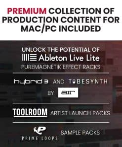 El paquete de producción incluye Ableton Live Lite con Puremagnetik Effect Racks, Hybrid 3 y TubeSynth de AIR Music Tech, paquetes de muestras Prime Loops, paquetes de lanzamiento de artistas de Toolroom Records (descargas)