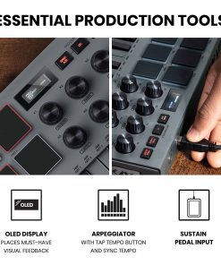 Presentamos el MPK Mini MK3 ¡Tu éxito comienza aquí! Presentamos el MPK Mini MK3, la tercera iteración del legendario controlador de teclado MIDI USB mini de 25 teclas más vendido del mundo que redefinió cómo una generación de creadores hacen música. Todo lo que demanda el productor de música moderno está aquí: compatibilidad universal para integración instantánea con su aplicación de producción musical favorita (DAW); su tamaño compacto lo convierte en un compañero de viaje ideal; su arsenal de almohadillas de batería, un arpegiador, MPC Note Repeat & Full Level, un joystick de 4 vías y controles MIDI asignables le permiten tomar el completo control de cada aspecto de su producción; el nuevo teclado dinámico mejorado de la generación 2 garantiza que su interpretación sea capturada con cada inflexión sutil de su ejecución. Para el principiante, MPK Mini es un paquete completo con todas las herramientas que necesita para crear éxitos desde el principio. Para el profesional en activo, MPK Mini es la navaja suiza musical definitiva, lista para cumplir con cualquier tarea musical. Cada canción comienza en algún lugar, así que deshágase de cualquier obstáculo comenzando su próximo éxito con MPK Mini. Kit de inicio completo de producción musical Su viaje hacia una canción de éxito comienza con MPK Mini y el Kit de inicio completo de producción musical es el mapa de ruta hacia su destino. Comience con un DAW basado en el legendario flujo de trabajo de MPC, agregue paquetes de expansión de batería y muestras que los profesionales de la industria utilizan, y termínelo con los instrumentos de plugin virtual más versátiles disponibles hoy, las posibilidades son infinitas. El software destacado incluye MPC Beats, AIR Hybrid, Mini Grand, Velvet y varios paquetes de expansión de MPC. Sencillez de configuración ¿No quiere complicarse con instalaciones complicadas? MPK Mini cuenta con una instalación única (disponible como descarga al registrarse en el sitio web de Akai Professional) de todo este software estándar de la industria para que pase menos tiempo en detalles técnicos y más tiempo creando su próximo éxito!