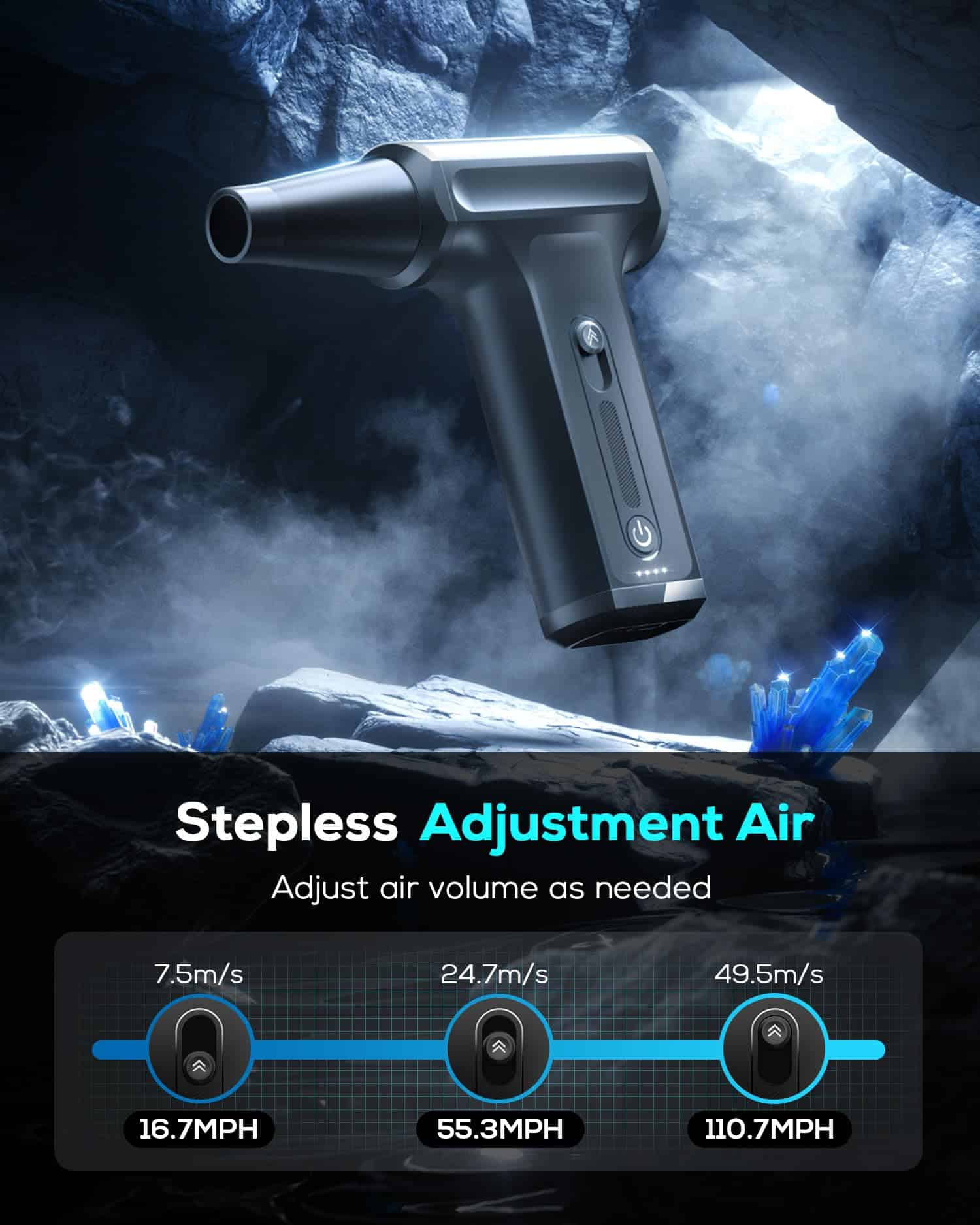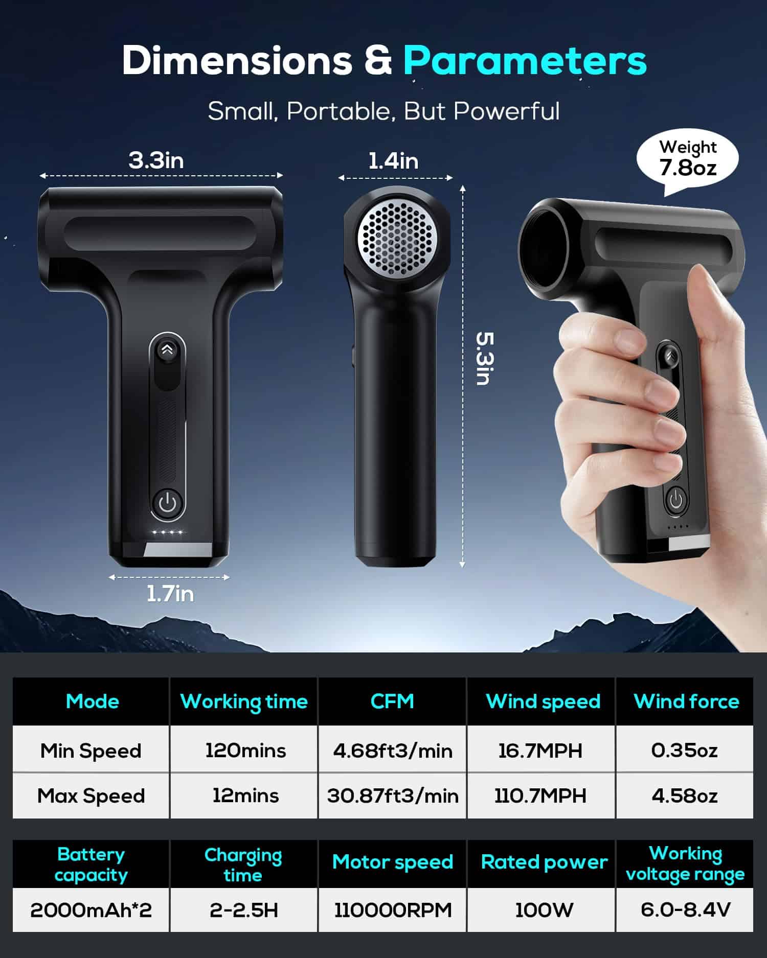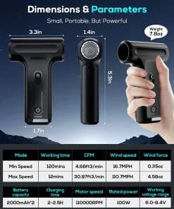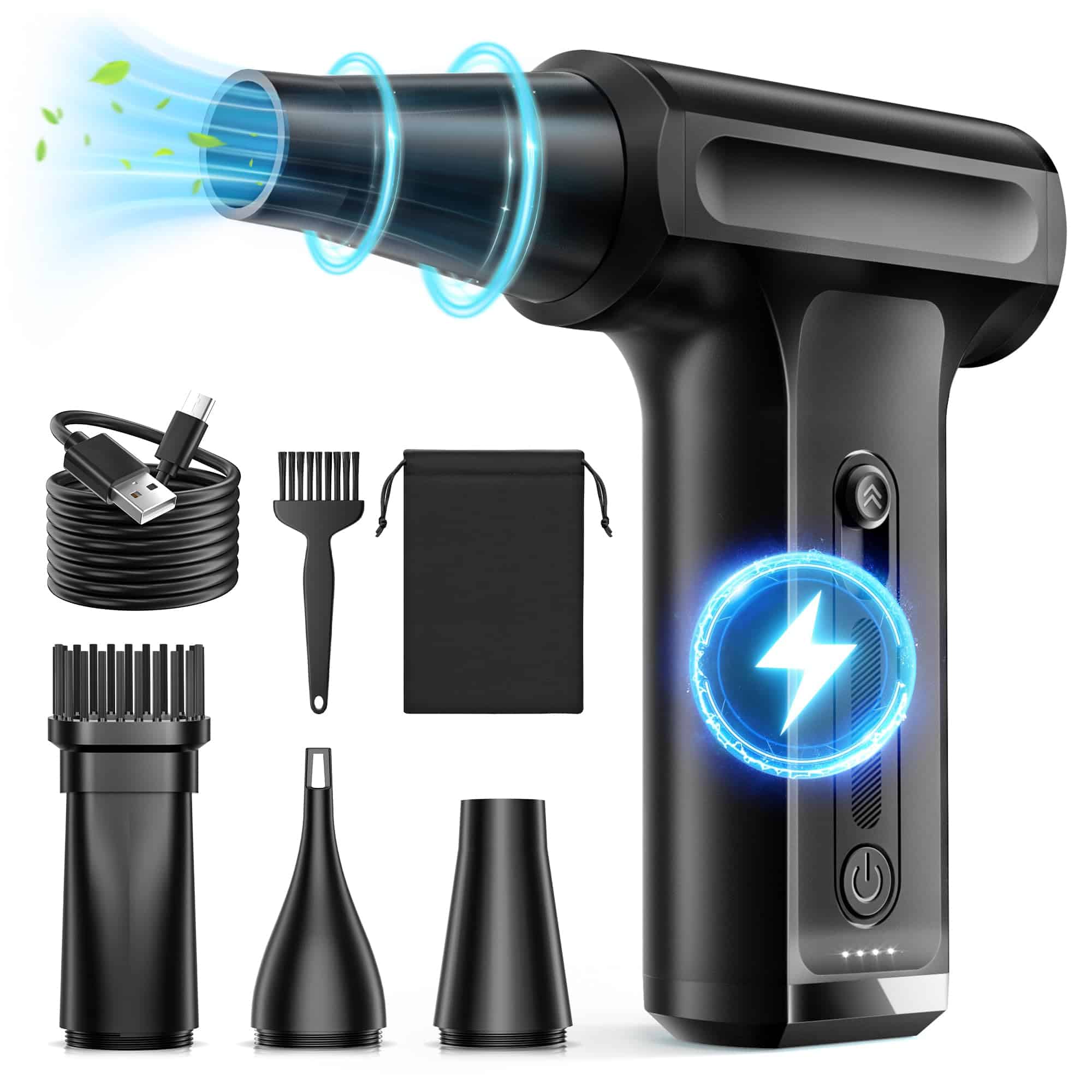 El AKSILM Soplador de Aire Comprimido es la solución perfecta para mantener tus dispositivos y espacios limpios y libres de polvo. Su diseño compacto y ligero lo hace fácil de transportar y almacenar. Con una velocidad ajustable de 110,000 RPM, este limpiador eléctrico ofrece un rendimiento excelente, superando a las latas de aire comprimido tradicionales. Además, la boquilla reemplazable te permite adaptar el soplador a diferentes necesidades de limpieza, llegando a lugares de difícil acceso. ¡No solo es un limpiador de polvo, también puede funcionar como secador de pelo para mascotas o un soplador de aire para otras tareas! Recuerda siempre esperar a que se enfríe antes de recargar para garantizar un uso seguro y eficaz. Si tienes alguna pregunta sobre el uso del producto, ¡no dudes en contactarnos!