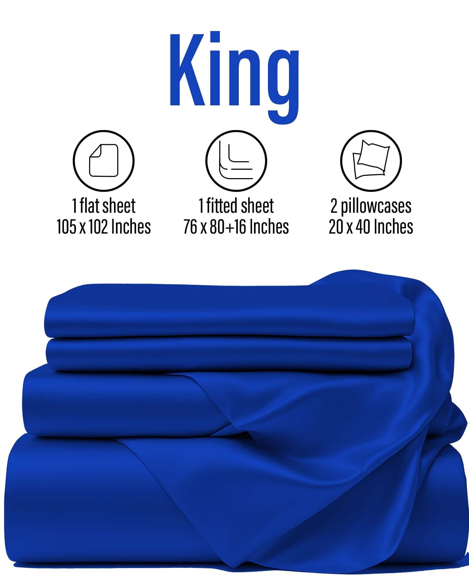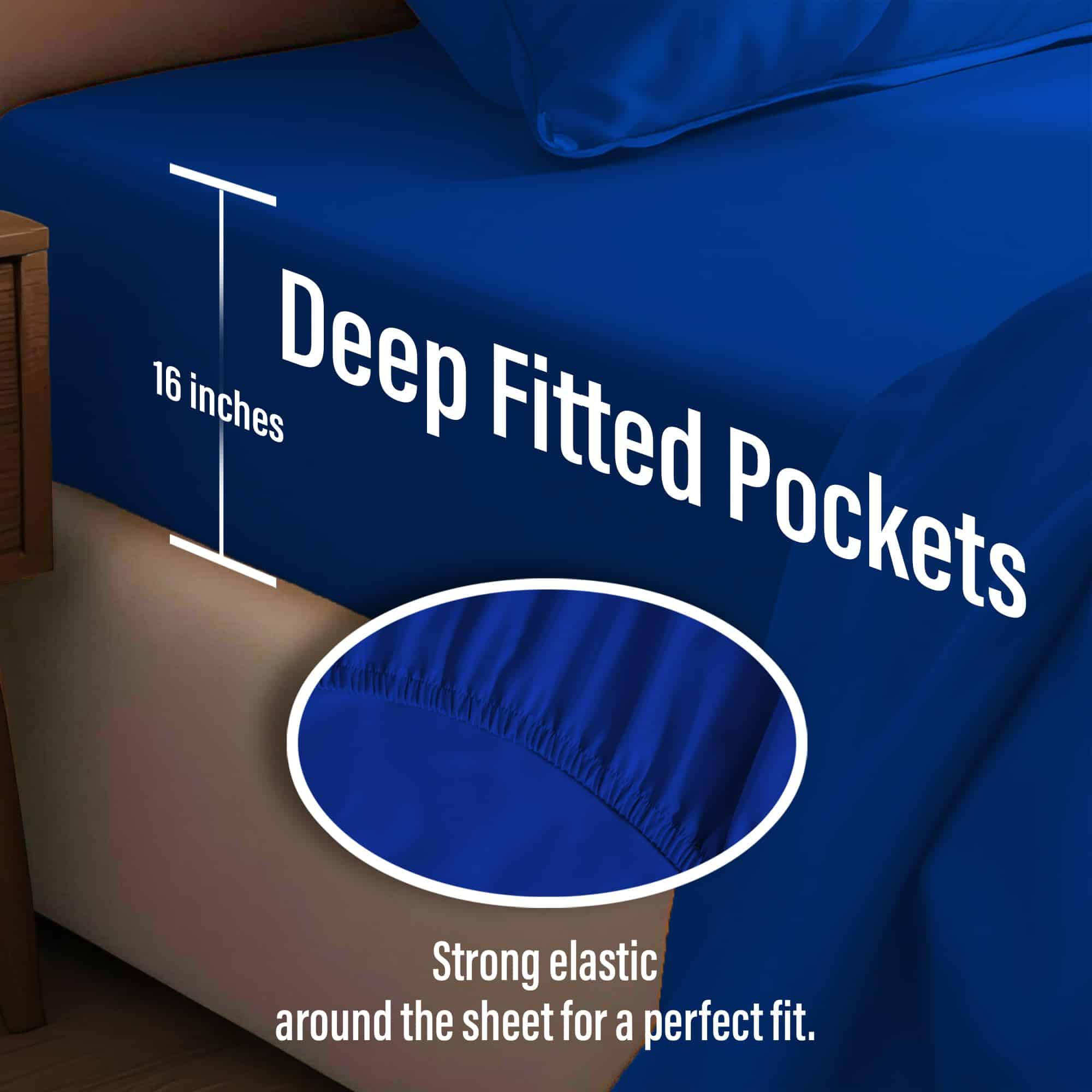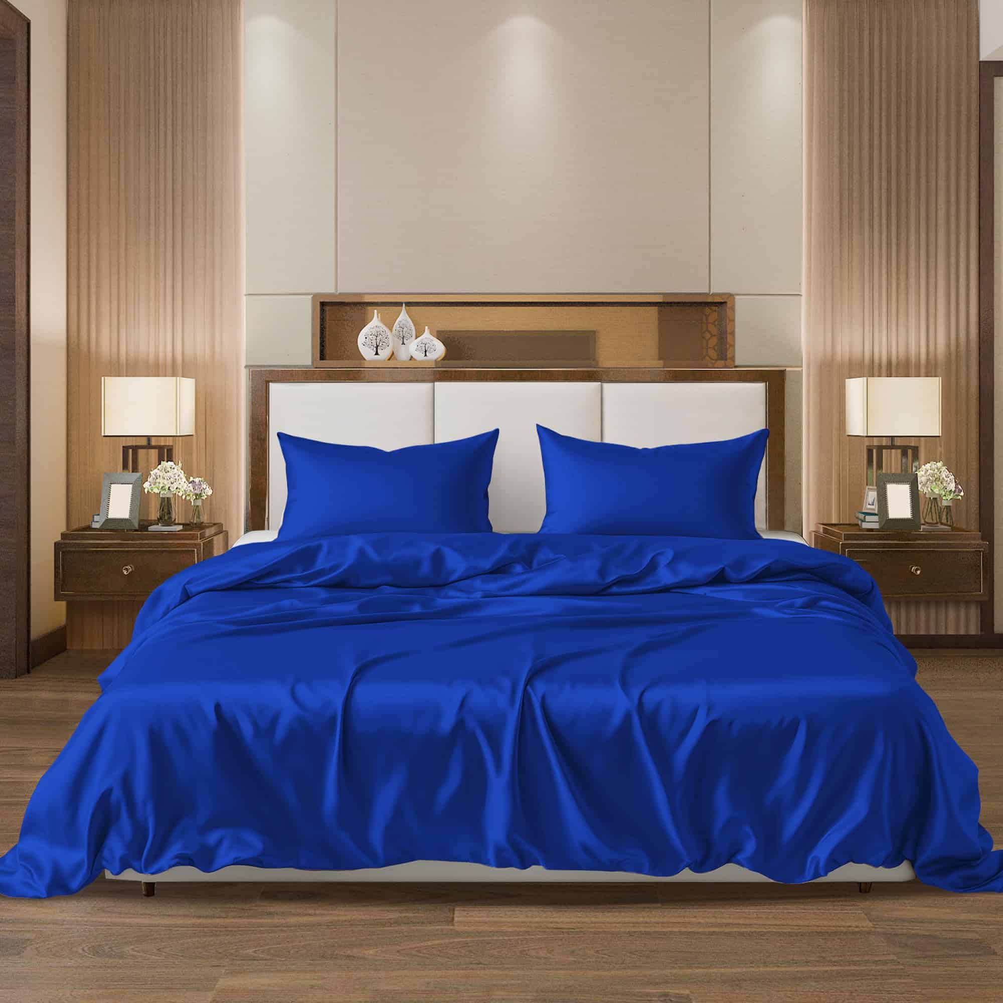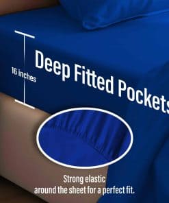2. Di adiós a las frustraciones de ajuste. Con bolsillos profundos de (16.5» / 42 cm), nuestras sábanas de seda para cama King se ajustan sin esfuerzo a tu colchón y se mantienen en su lugar, para una experiencia de sueño ininterrumpida. Además, el vibrante color azul añade un toque animado a tu dormitorio.