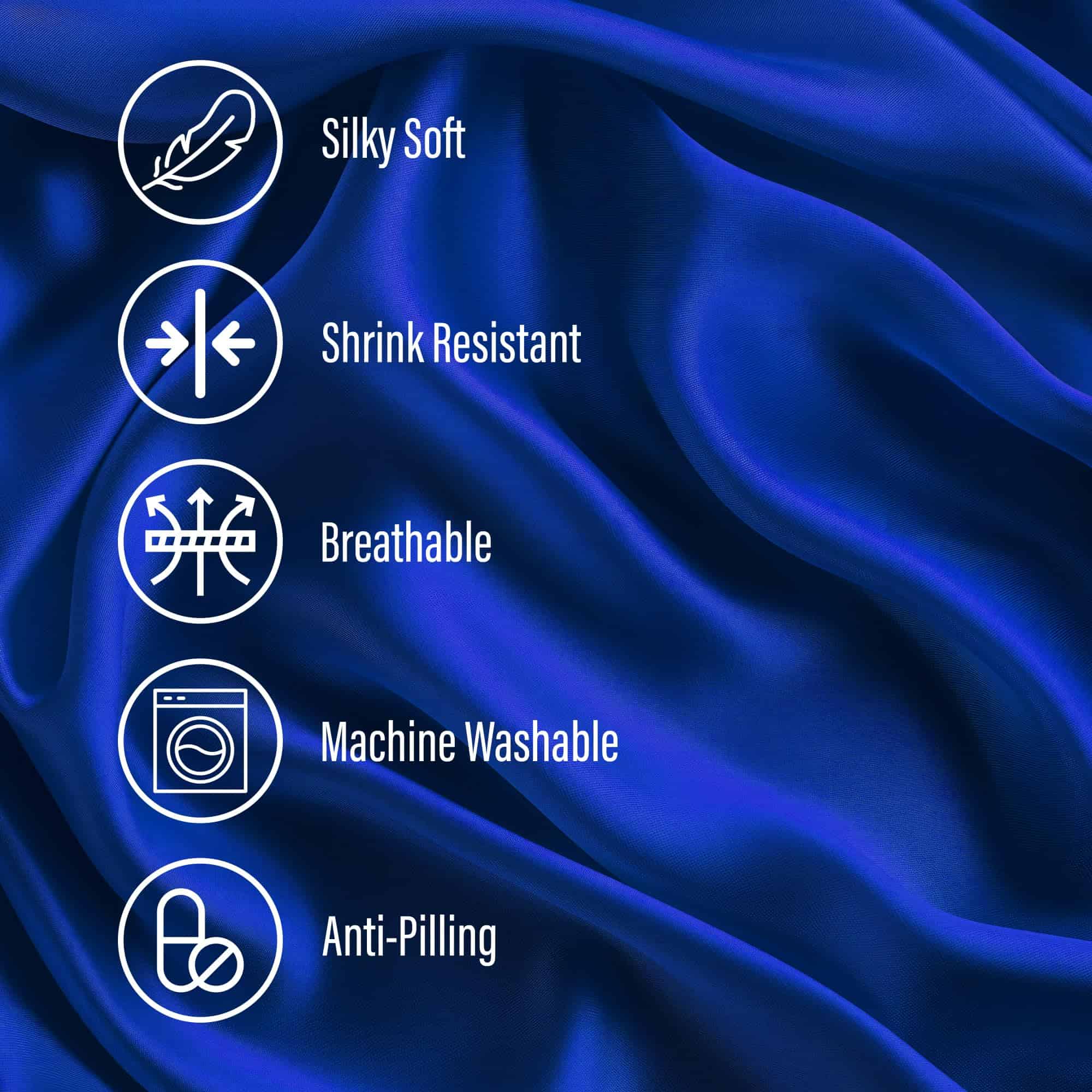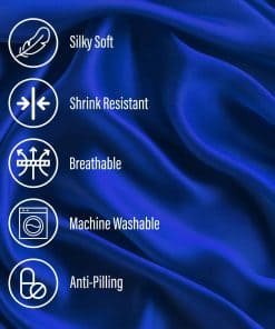 3. ¡Valor inigualable por tu dinero! Nuestro duradero juego de sábanas de seda azul marino de 4 piezas incluye 1 sábana plana (105» x 102»), 1 sábana ajustable (76» x 80» +16»), 2 fundas de almohada (20» x 40») – una solución completa para dormir de lujo. Tela de satén de calidad premium que dura más, todo a un precio asequible.
