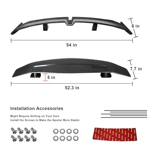 1. Compatibilidad Universal: Nuestra Ala Trasera Universal de 54 Pulgadas está diseñada para adaptarse a todos los automóviles Hatchback Sedán Coupé Convertible, incluido el GT de Estilo MG6 PRO. Con una longitud de 137.5 cm (54 pulgadas) y una distancia entre dos soportes de 62 cm (24.5 pulgadas), esta ala asegura un ajuste perfecto. Antes de comprar, mida el tamaño de la tapa de su maletero para garantizar la mejor decoración para su vehículo.