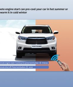 Alarma para automóvil EASYGUARD EC012 con inicio remoto botón de inicio por proximidad desbloqueo de entrada sin llave DC12V. Apto para el 95% de los automóviles con arranque de llave DC12V en el mercado, incluye transmisión automática, transmisión manual, vehículos a gasolina o diésel. No funciona con vehículos que ya tienen un botón de inicio original. Este artículo requiere la instalación por un instalador de alarmas capacitado si no tienes experiencia en la instalación de alarmas. Para utilizar la función de inicio remoto, puede que necesites comprar un módulo bypass adicional para tratar con el inmovilizador de chip de la llave original. Necesita desbloquear/soltar/retirar el bloqueo del volante durante la instalación. Necesita descargar la APP para utilizar la función de control de la APP, compatible con smartphones iOS y Android.