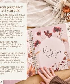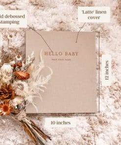 MAJESTUOSO ARTE CON CUBIERTA DE LINO NATURAL: ¿Harto de que te decepcionen los libros para bebés de baja calidad con páginas delgadas que se transparentan? Te escuchamos. Este libro de bebé Peachly fue creado para durar toda la vida. Desde la duradera cubierta de lino de Grado A, meticulosamente estampada con dorado, hasta las páginas internas de cartulina de 200 gsm libre de ácido (¡son gruesas!) – todos los materiales utilizados son de la más alta calidad. Cuando sostienes tu libro de recuerdos para bebés por primera vez, se siente como un poco de magia oh-tan-fancy.