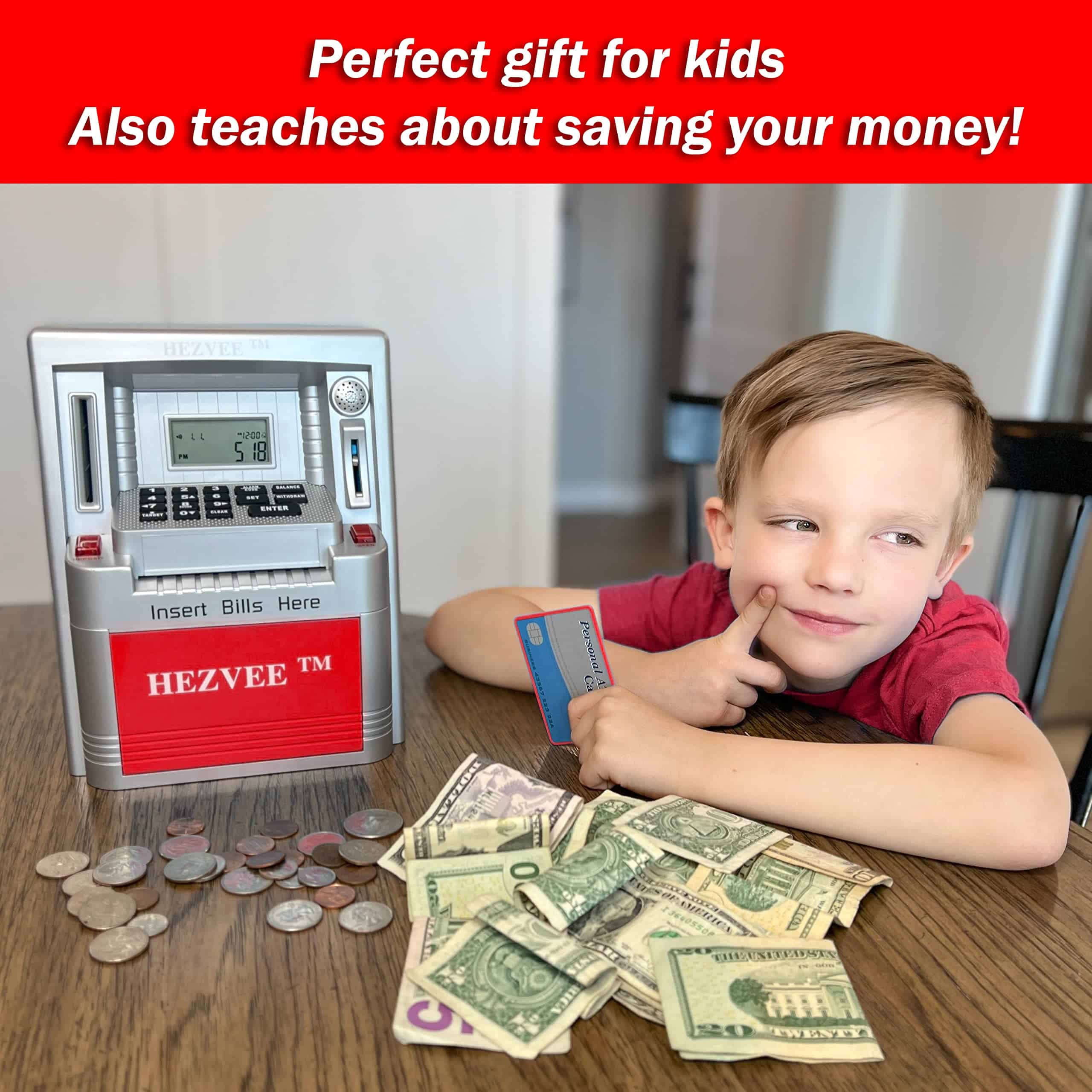 8. MÁQUINA DE BANCO ATM PARA NIÑOS: En general, esta alcancía para niños es una excelente inversión en el futuro financiero de tu hijo, ayudándoles a desarrollar las habilidades y hábitos que necesitan para tener éxito con el dinero a medida que crecen.